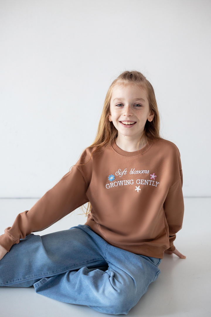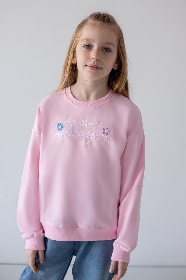 Цей світшот створений для активних днів, яскравих емоцій і впевнених кроків. Світшот створює ніжний, легкий образ, а стильна рельєфна вишивка на грудях, робить модель особливою. Двонитковий футер — ідеальна тканина для міжсезоння та прохолодних днів. Полотно м’яке, приємне до тіла, добре тримає форму та дозволяє шкірі дихати. Продуманий вільний крій зі спущеною лінією плеча виглядає сучасно. Манжети на рукавах і по низу додають завершеності силуету та забезпечують комфортну посадку. Практичний, універсальний і трендовий — саме той світшот, який поєднує стиль, якість та зручність.