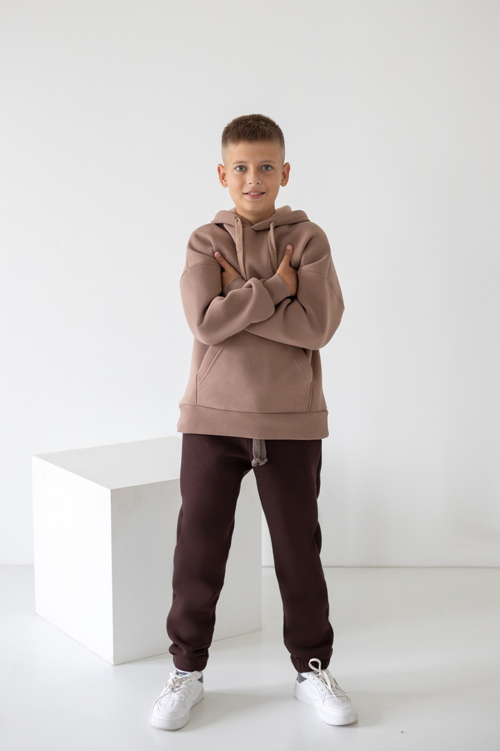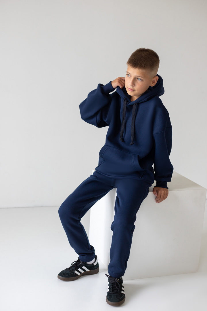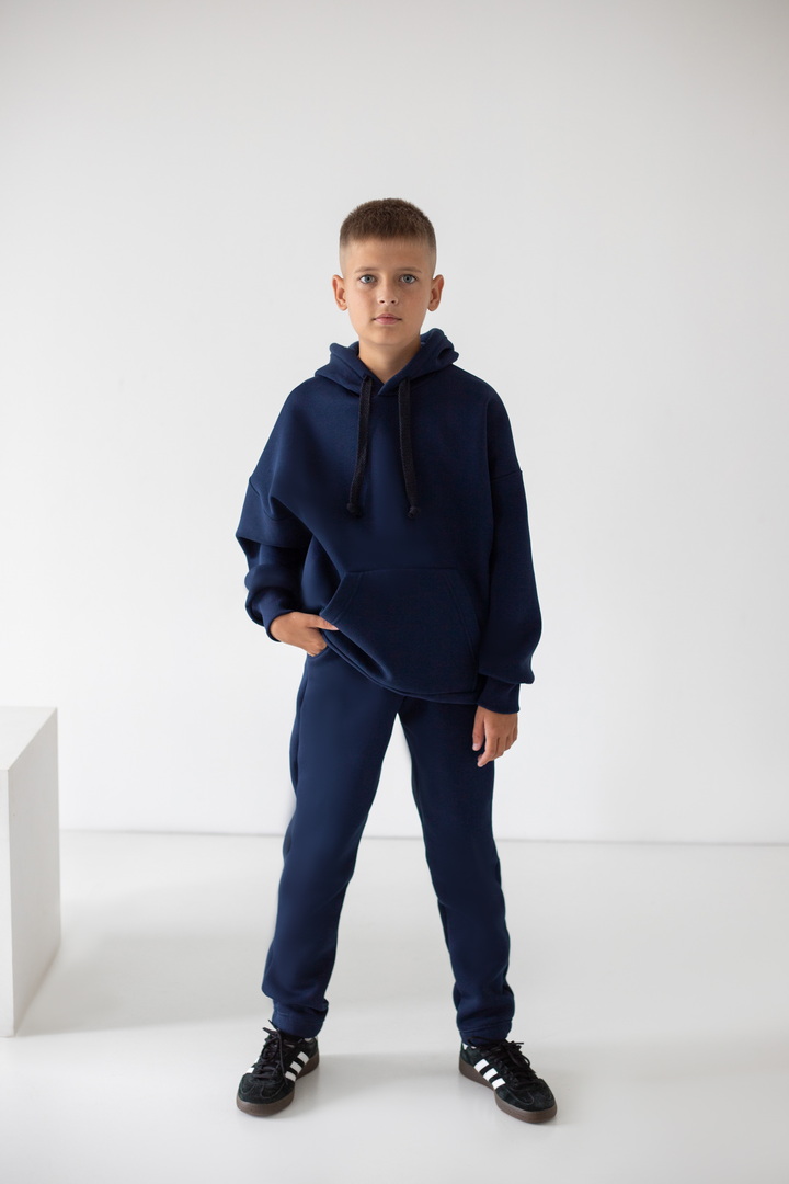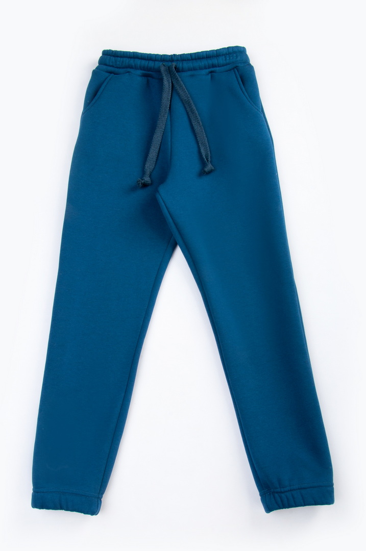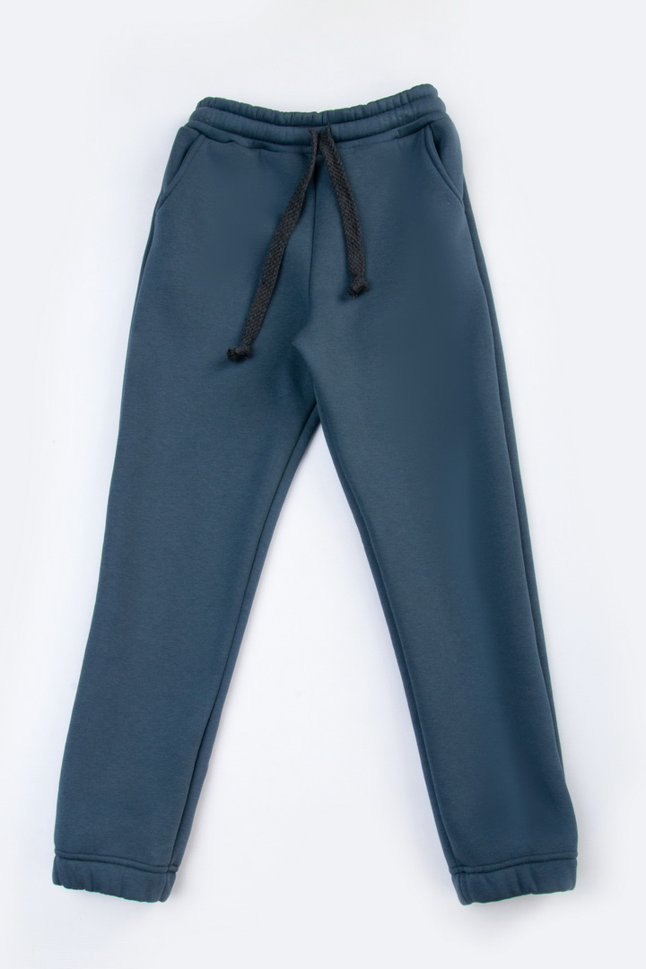 Базові штани для хлопців-підлітків з теплого триниткового футера з начосом. Модель з кишенями, на еластичній тасьмі по низу, з широким поясом з еластичною тасьмою, відстрочкою і шнурками. Полотно щільне, має гарні теплоізоляційні властивості.