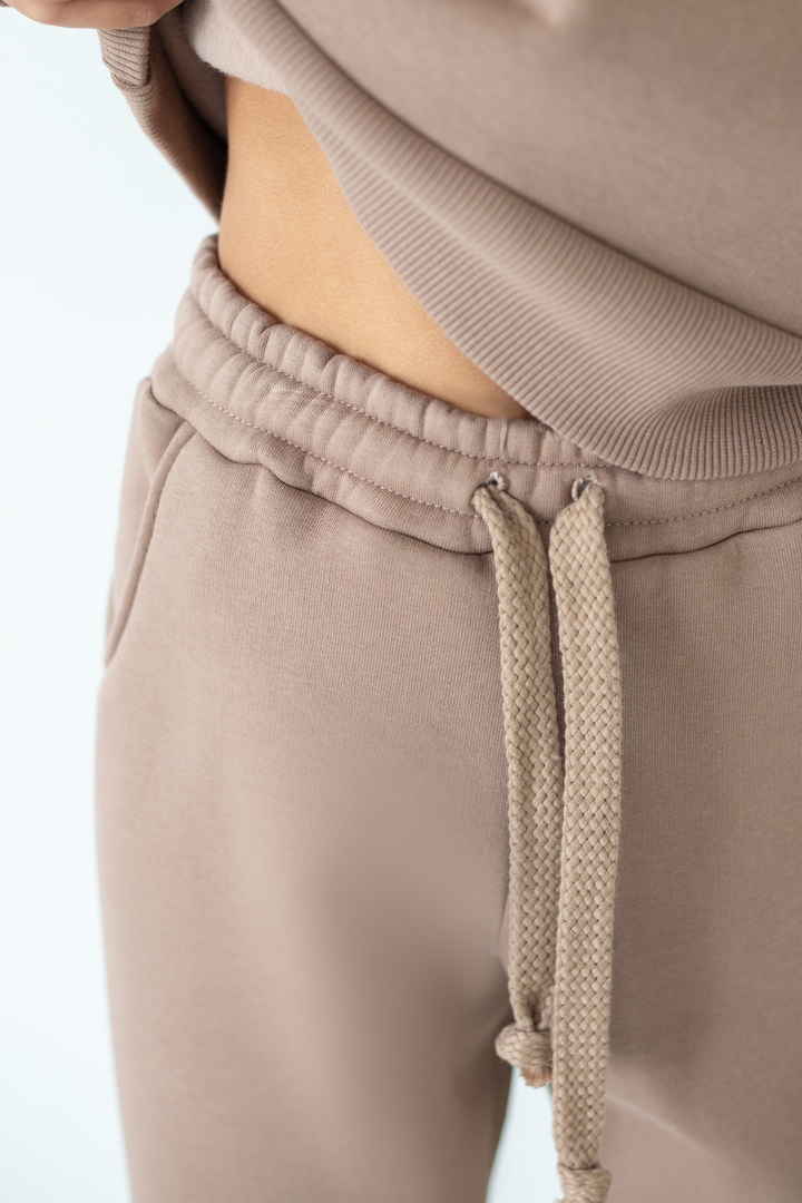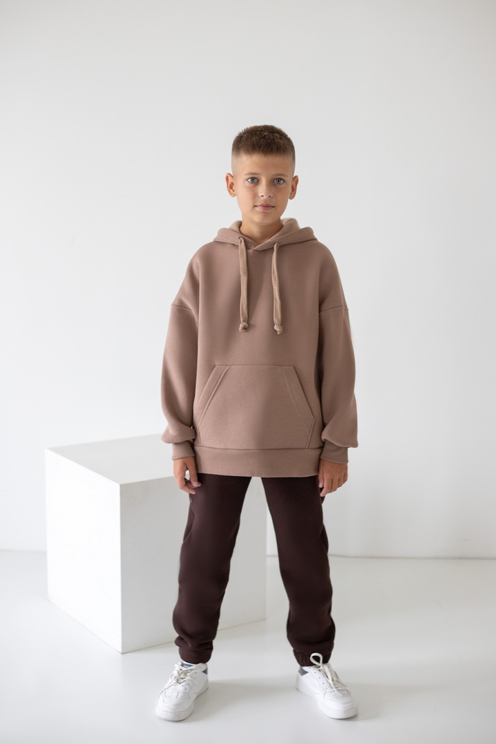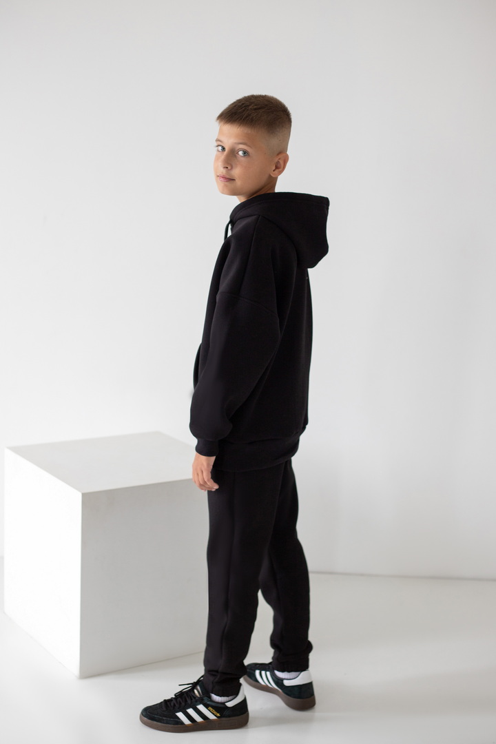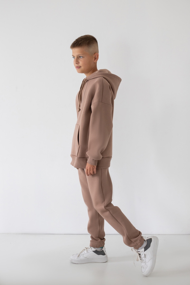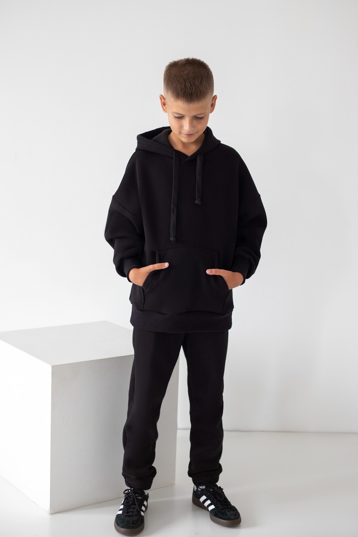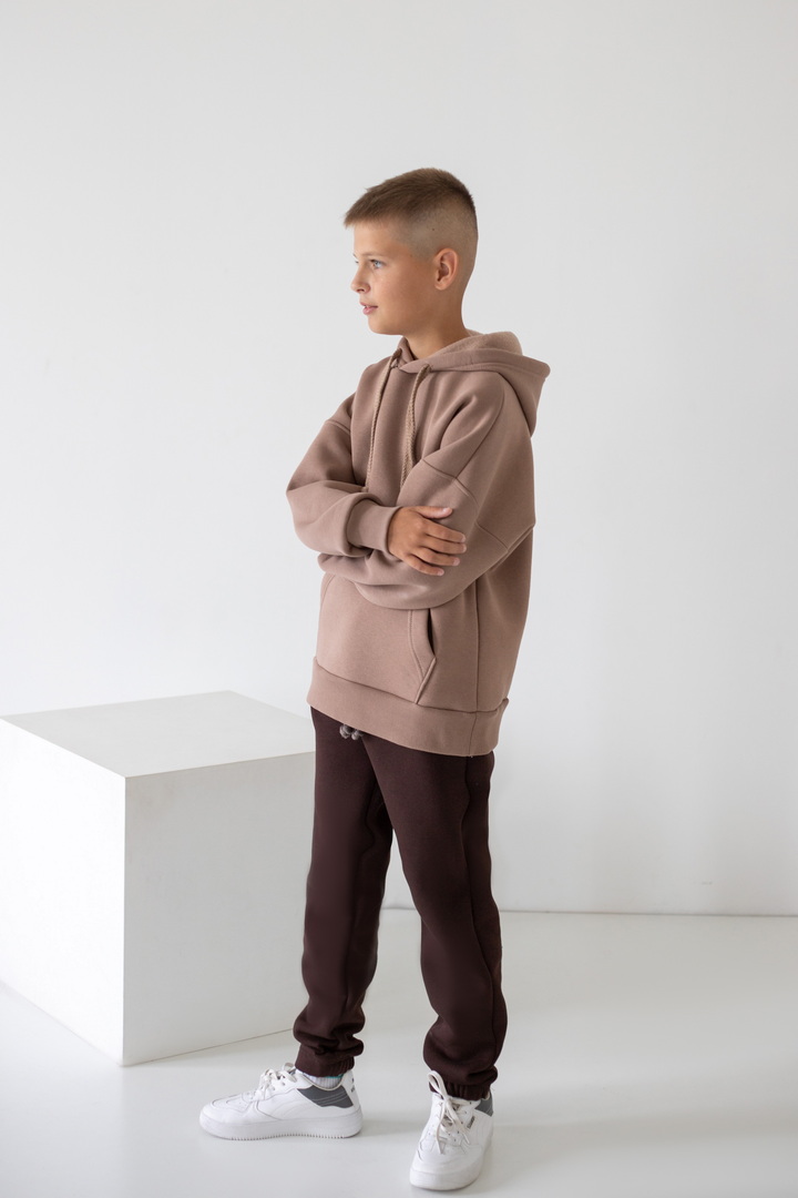 Базові штани для хлопців-підлітків з теплого триниткового футера з начосом. Модель з кишенями, на еластичній тасьмі по низу, з широким поясом з еластичною тасьмою, відстрочкою і шнурками. Полотно щільне, має гарні теплоізоляційні властивості.