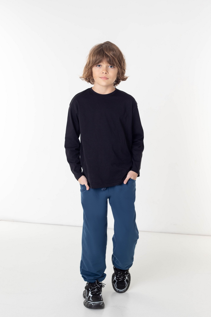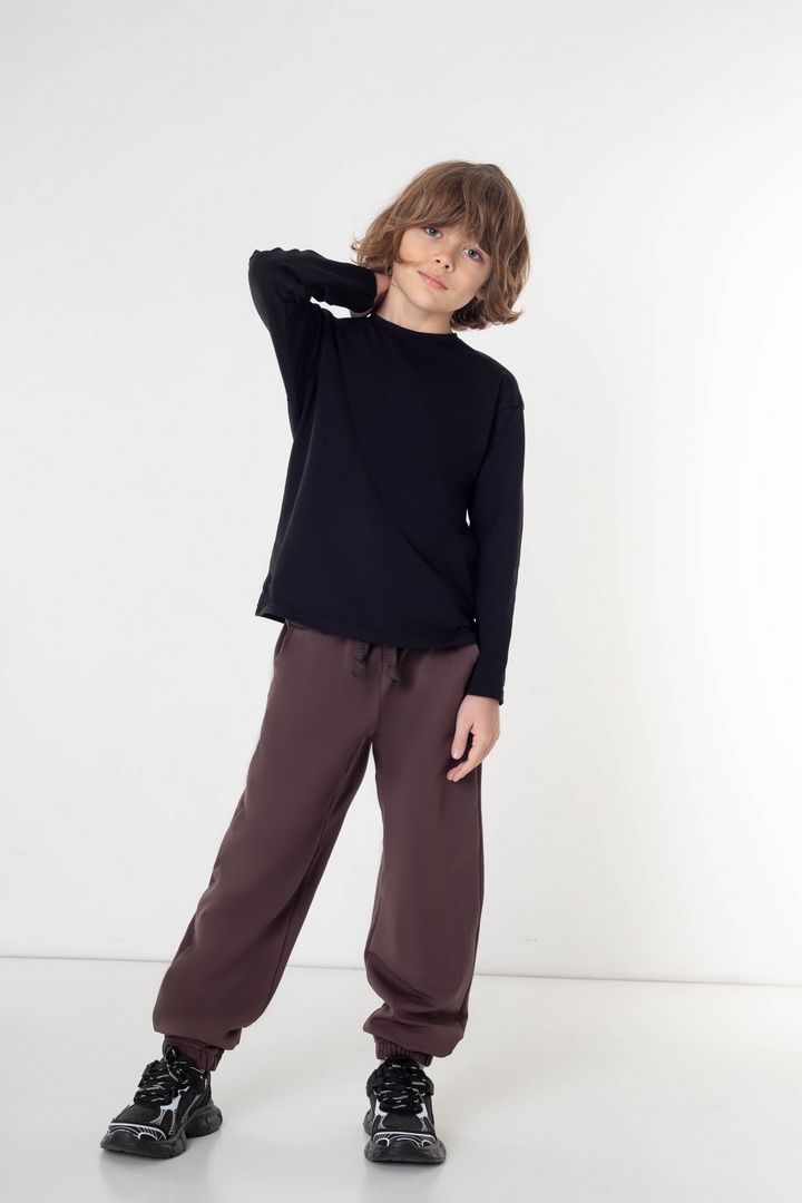 Штани для хлопців із двониткового футера — це поєднання стриманої естетики, продуманого крою та матеріалу високого класу. Двонитковий футер має щільну, рівну текстуру з м’яким дотиком до шкіри. Матеріал добре зберігає тепло, водночас пропускає повітря, не перевантажуючи образ зайвим об’ємом. Штани виглядають охайно протягом усього дня, не витягуються на колінах і залишаються презентабельними. Анатомічно продуманий крій та еластичний пояс створює ідеальну посадку без тиску. Манжети на резинці акуратно формують силует, додаючи образу завершеності та захищають від прохолоди. Лаконічний дизайн дозволяє легко поєднувати модель з базовим та верхнім одягом, формуючи сучасний образ у стилі casual premium. Ці штани — не просто зручний одяг, а функціональна основа гардероба, яка щодня виглядає дорого та доречно.