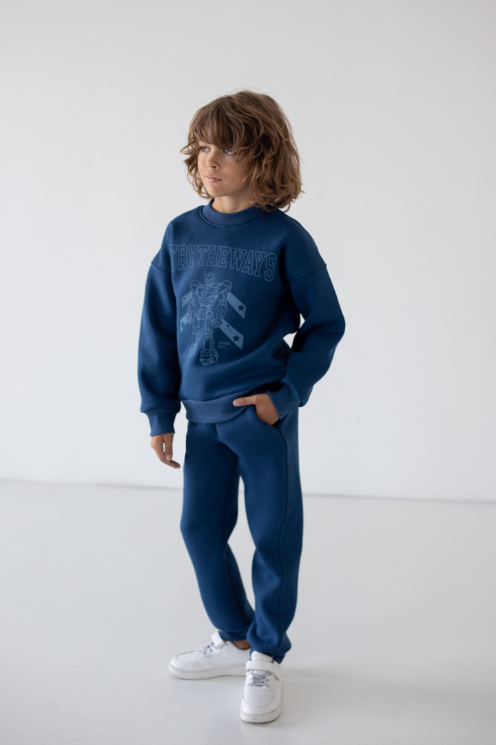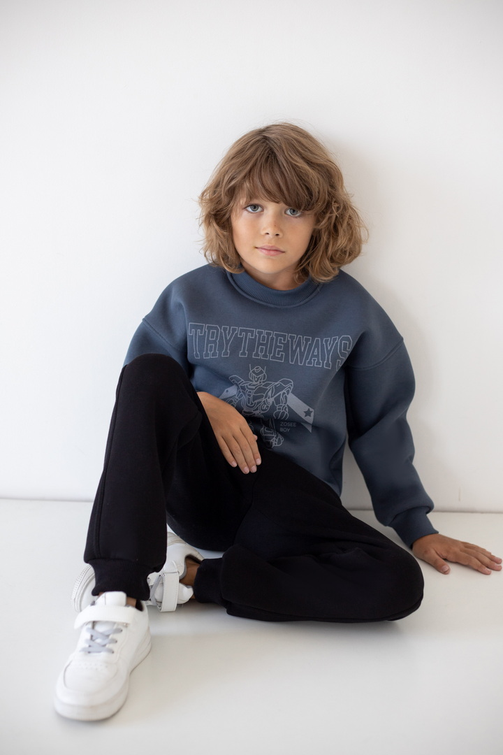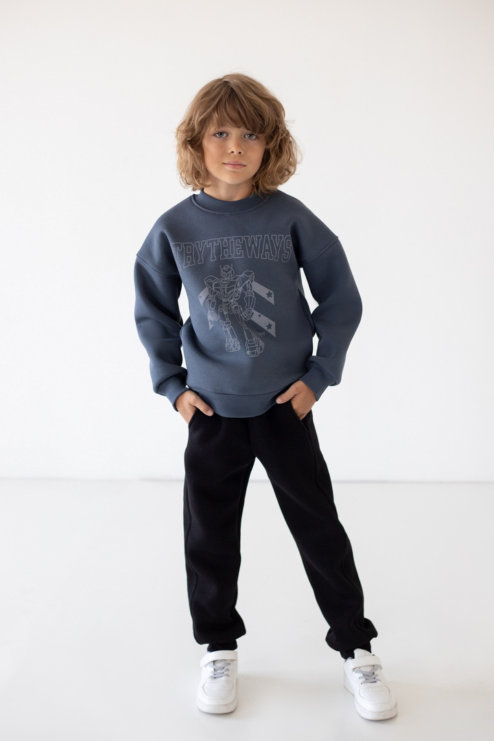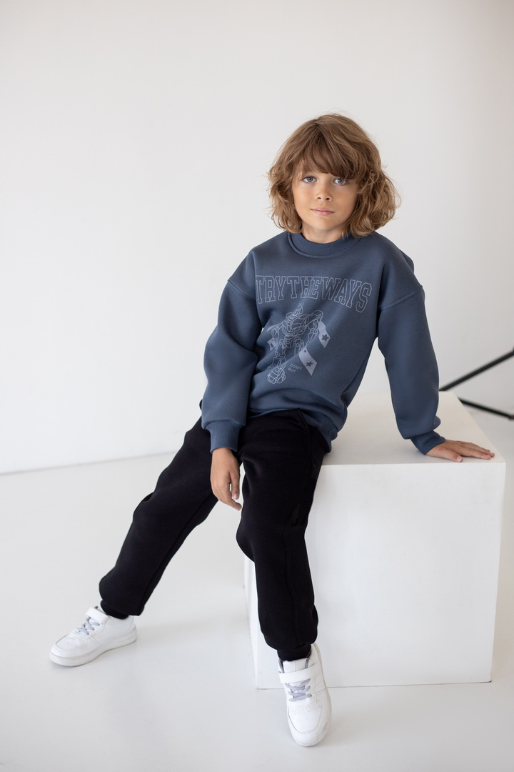 Базові штани для хлопчиків з теплого триниткового футера з начосом. Модель з кишенями, манжетами, на широкому поясі з еластичною тасьмою, відстрочкою та шнурком. Полотно щільне, має гарні теплоізоляційні властивості.