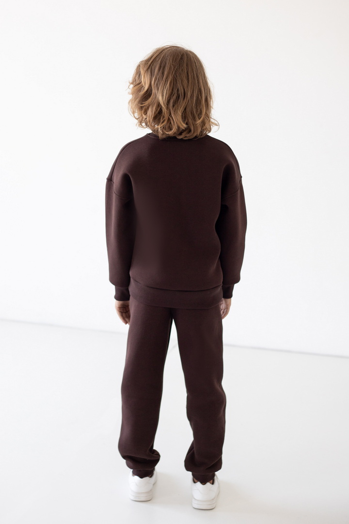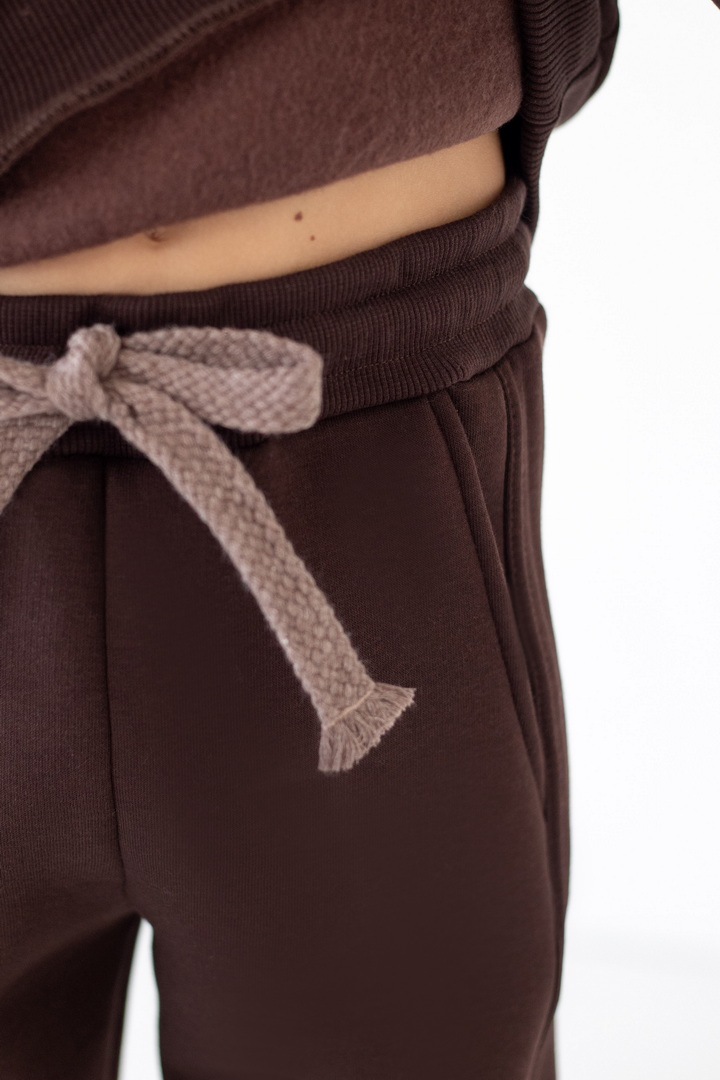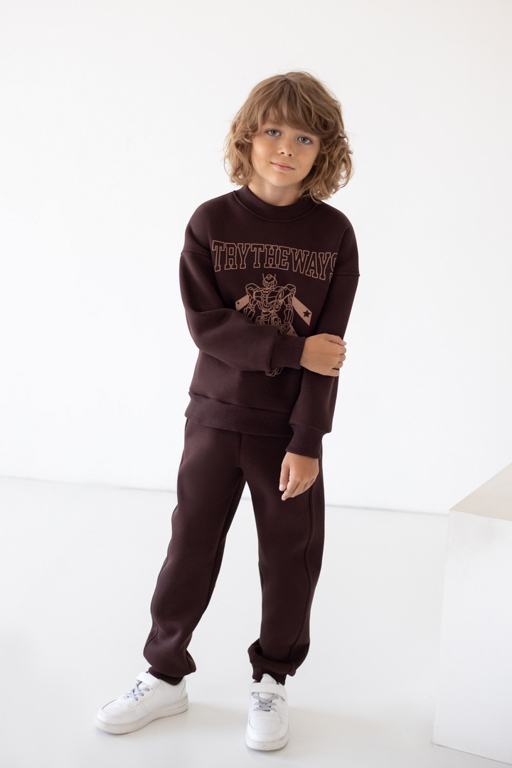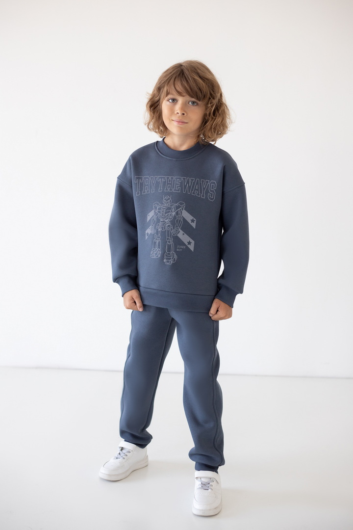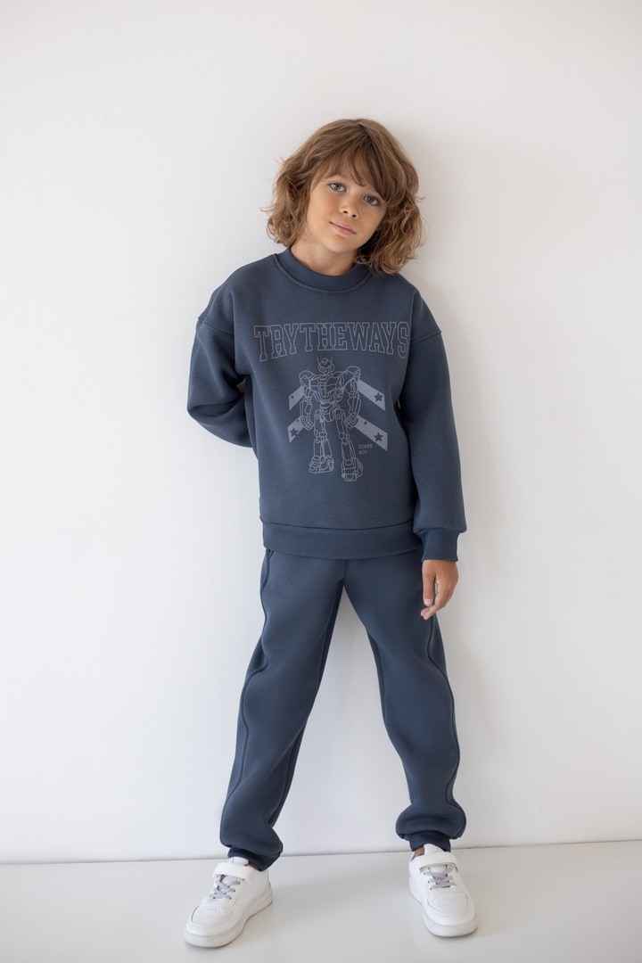 Базові штани для хлопчиків з теплого триниткового футера з начосом. Модель з кишенями, манжетами, на широкому поясі з еластичною тасьмою, відстрочкою та шнурком. Полотно щільне, має гарні теплоізоляційні властивості.