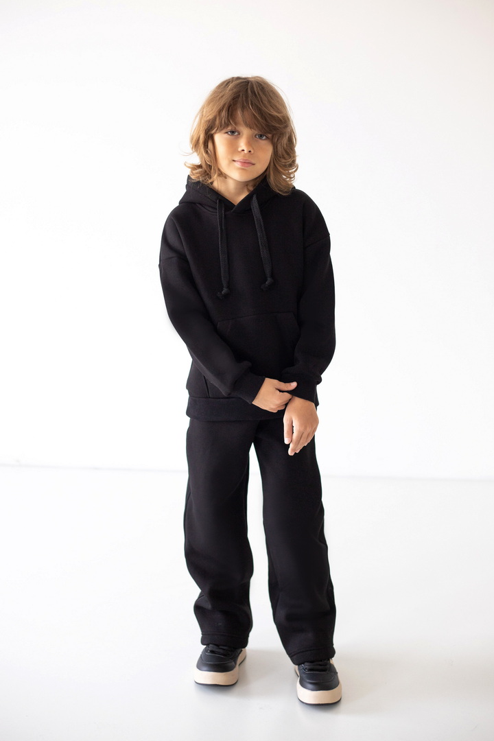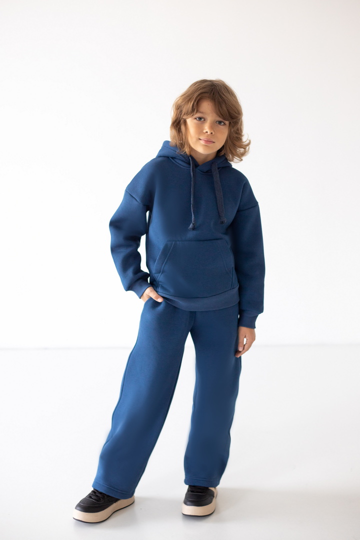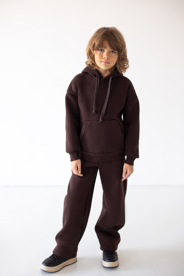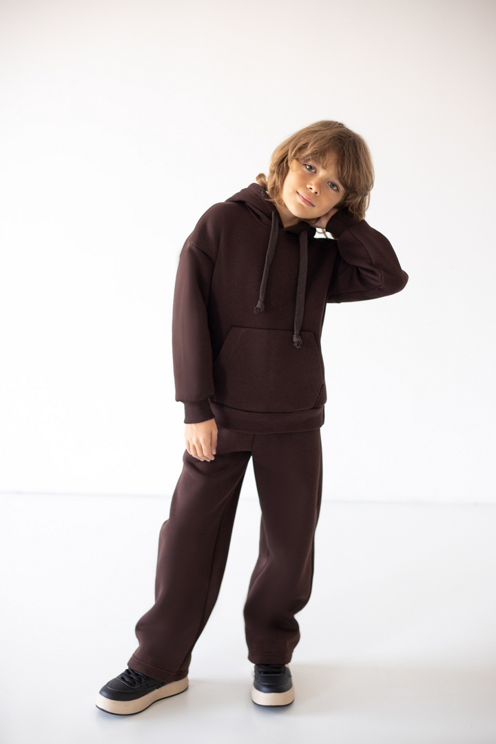 Модель штанів має вільний крій, м’яку еластичну резинку на талії та шнурок для зручного регулювання об’єму. Штани виготовлені з теплого трикотажу з начосом, що забезпечує комфорт і затишок у прохолодну погоду. Ідеально підходять для щоденного носіння, прогулянок чи відпочинку вдома.
