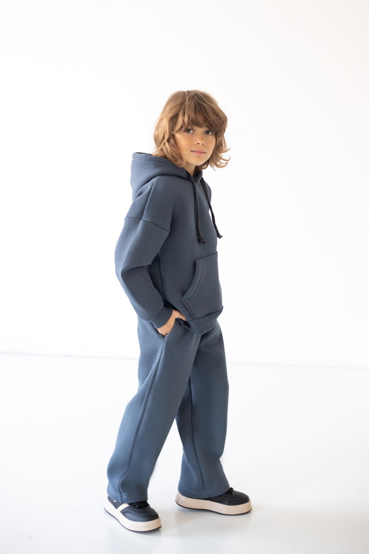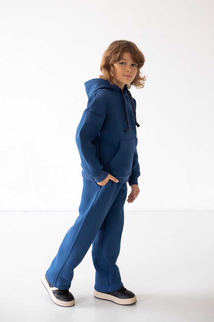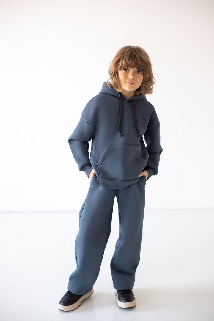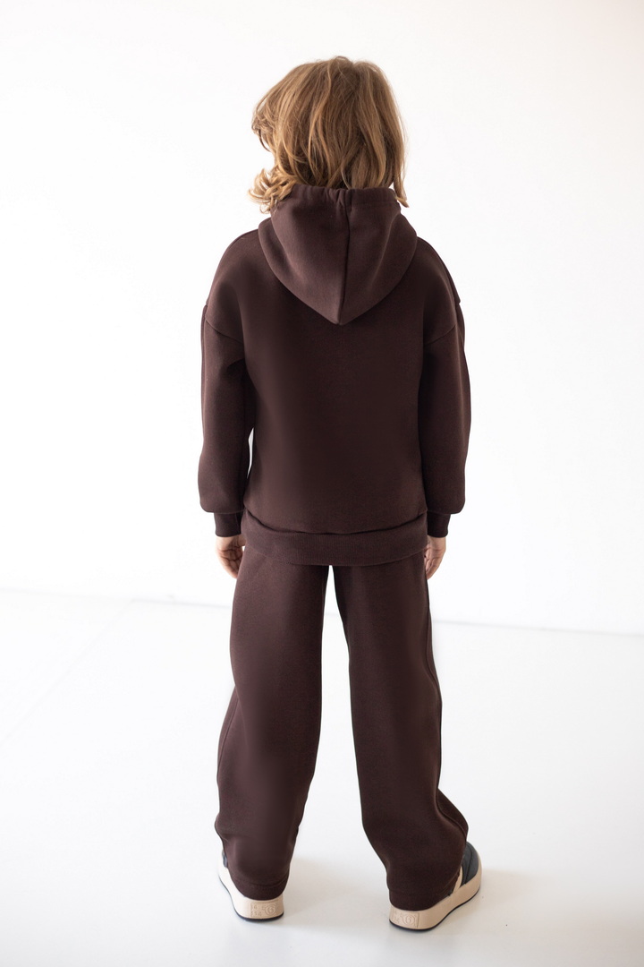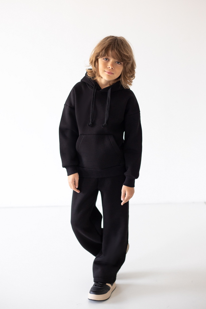 Модель штанів має вільний крій, м’яку еластичну резинку на талії та шнурок для зручного регулювання об’єму. Штани виготовлені з теплого трикотажу з начосом, що забезпечує комфорт і затишок у прохолодну погоду. Ідеально підходять для щоденного носіння, прогулянок чи відпочинку вдома.