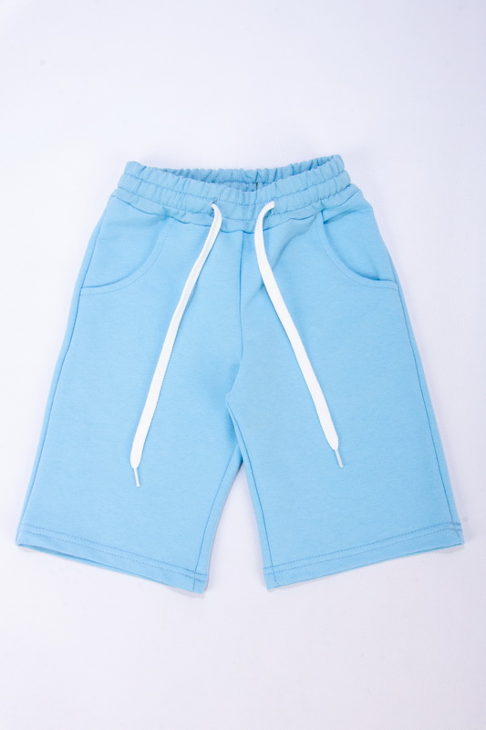 Базові літні шорти для хлопчиків з двохниткового футера. Модель стандартної посадки довжиною до коліна, з кишенями, пришивним поясом з широкою еластичною тасьмою, відстрочкою і шнурком, виконана з однотонного полотна різних кольорів. Шорти універсальні, комбінуються з будь-якою однотонною або принтованою футболкою, майками, безрукавками. Полотно хорошої якості, не витягується, не скачується, має бавовну в складі, може давати незначну усадку після прання.