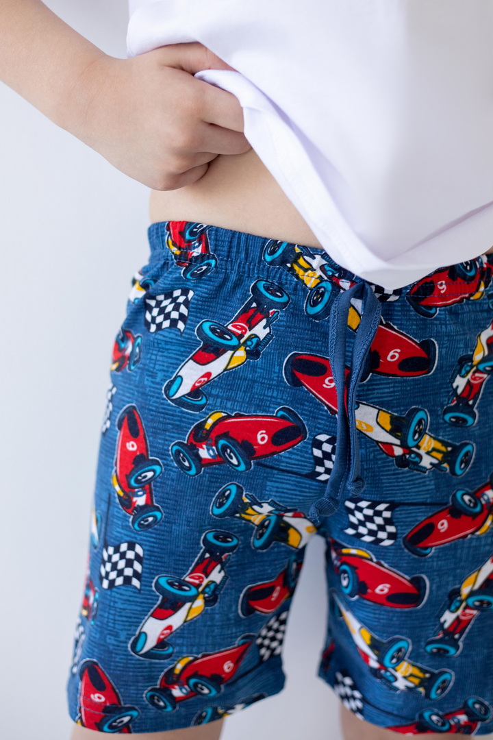 Шорти для хлопчиків — це ідеальне поєднання комфорту, практичності та яскравого дитячого дизайну. Виготовлені з якісного бавовняного куліру, вони м’які, легкі, завдяки чому дитині комфортно навіть у спекотні дні. Натуральна тканина добре пропускає повітря, швидко вбирає вологу та не викликає подразнень. Модель має продуманий зручний крій, еластичний пояс із м’якою резинкою та регульованим шнурком, який забезпечує ідеальну посадку по фігурі, не здавлює і дозволяє легко підлаштувати об’єм під дитину. Оригінальний принт із веселими мотивами, додає шортам яскравості. Шорти прості у догляді, не втрачають форму та насиченість кольорів, що робить їх практичним вибором для щоденного використання.
