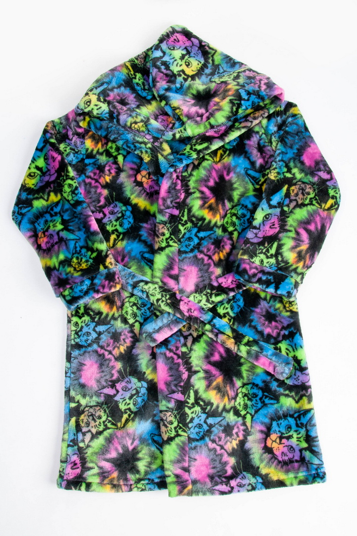 Теплий затишний халат з м 'якого, яскравого трикотажного полотна. Велсофт/рвана махра (Welsoft) - трикотажне полотно з дуже м'яким високим ворсом. Часто використовується для пошиття халатів, ясельних комбінезонів. Рвана махра практична у використанні, не розтягується і не сідає після прання. Підходить для повсякденного носіння в будь-яку пору року.