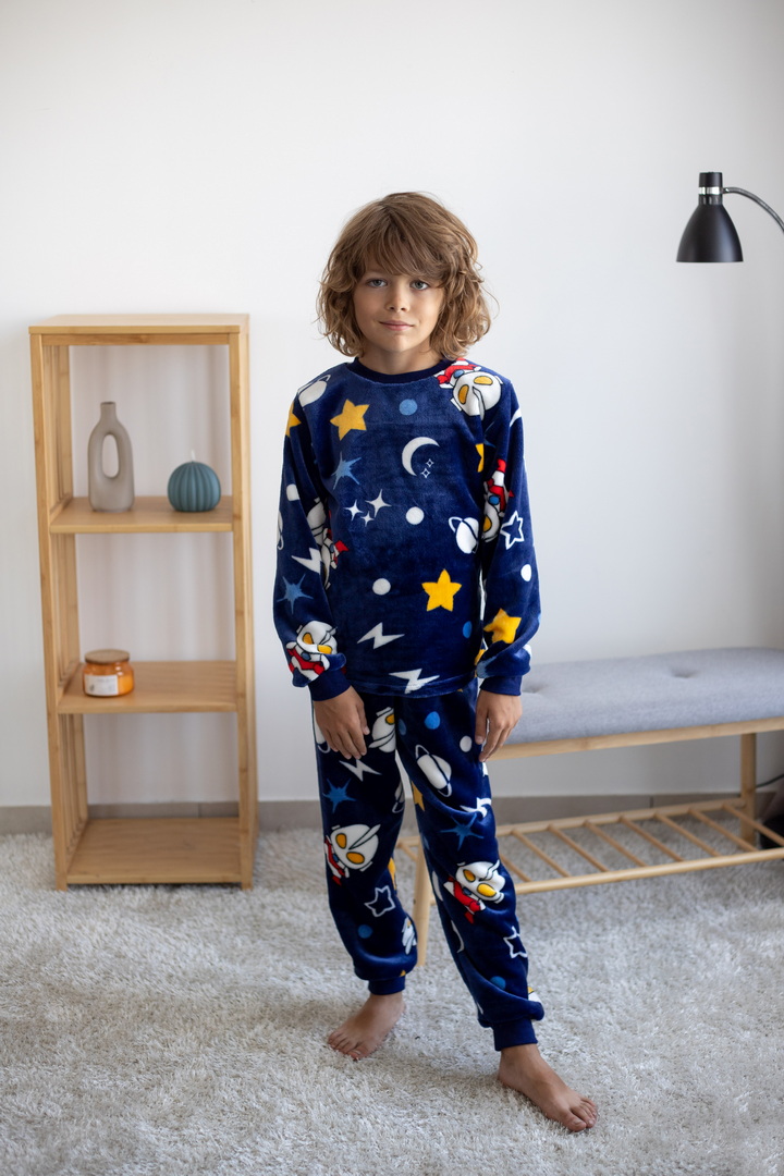 Тепла, м’яка та по-справжньому затишна — ця махрова піжама створена для комфортного сну й домашніх пригод маленьких непосид. Вона ніжно огортає тіло, зберігає тепло та дарує відчуття спокою й безпеки у прохолодні вечори. Махрова тканина приємна на дотик, добре утримує тепло й водночас дозволяє шкірі дихати. Піжама не сковує рухів — у ній зручно спати, гратися, читати чи дивитися улюблені мультфільми перед сном. Зручний крій забезпечує комфортну посадку: верх добре сидить по фігурі, а штани з еластичним поясом м’яко фіксуються, не тиснуть і не перекручуються під час сну. Піжама легко одягається та зберігає охайний вигляд. Чудовий вибір для холодної пори року, домашнього відпочинку, ночівлі або як практичний і теплий подарунок.