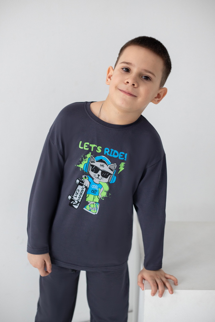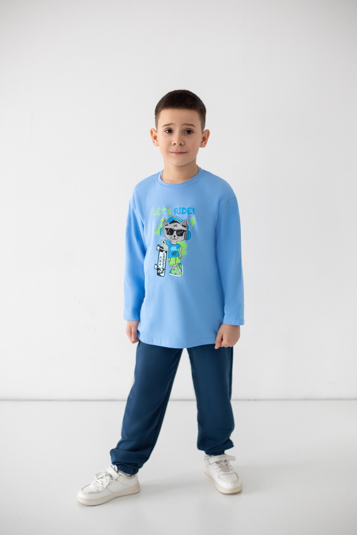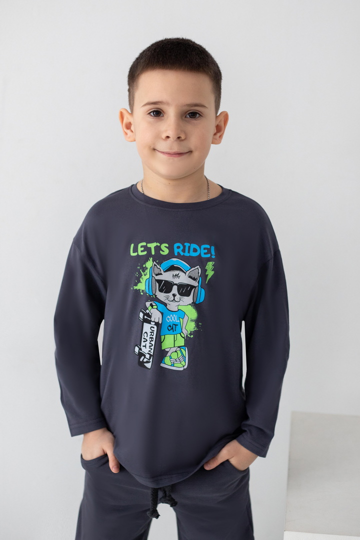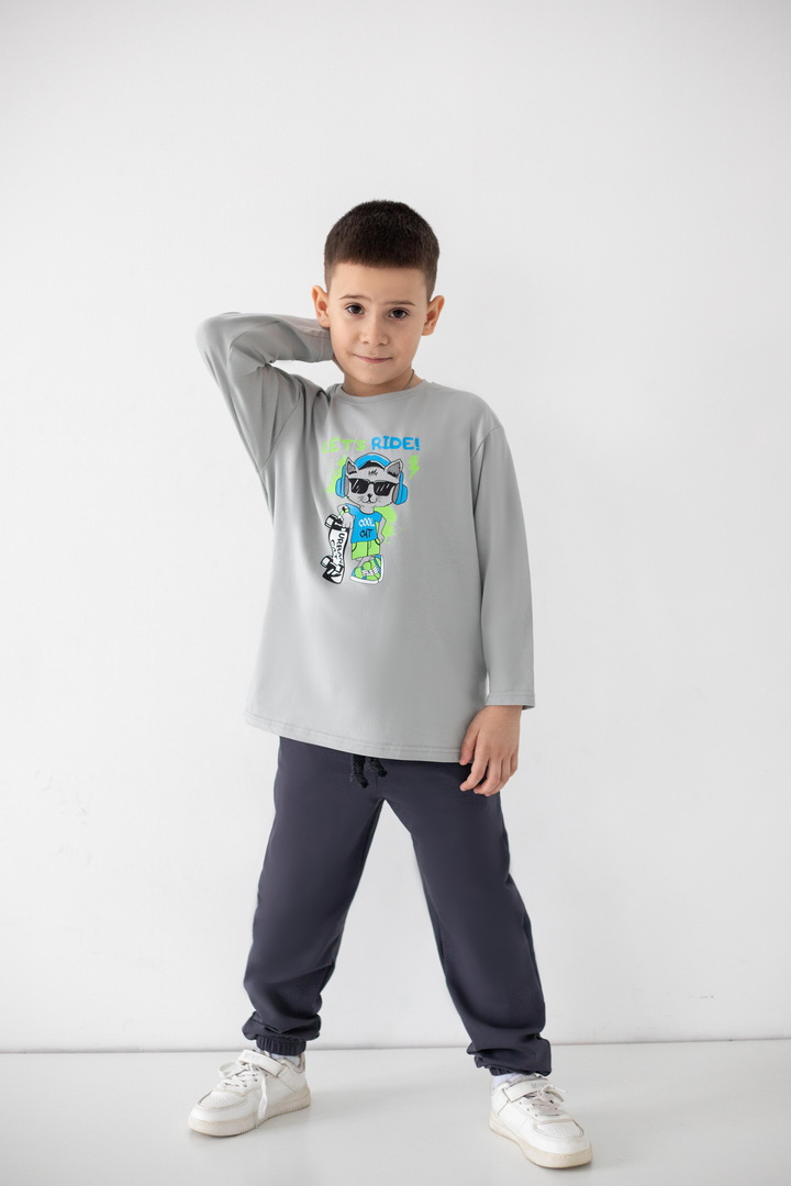 Лонгслів для хлопчиків стане чудовим доповненням до гардеробу юних модників. Вироблено з еластичного стрейч-куліру. Полотно відмінної якості, не линяє, не скачується. Лонгслів універсальний, носити можна з джинсами, брюками, під будь-яке взуття.