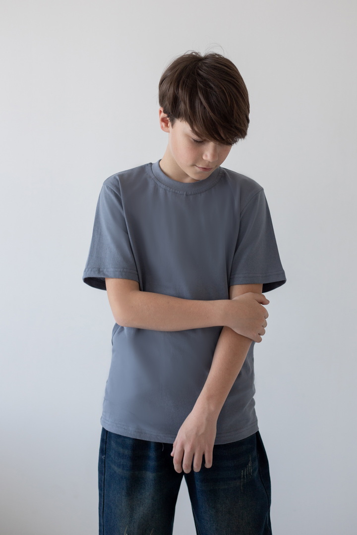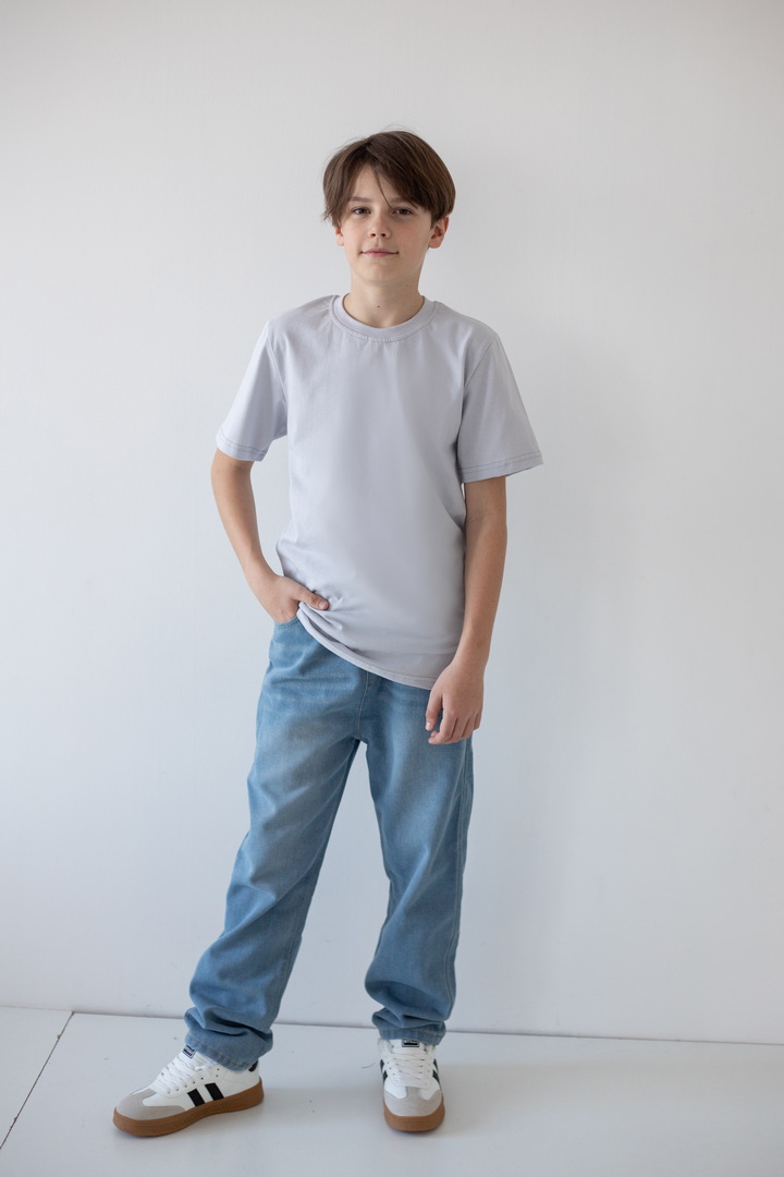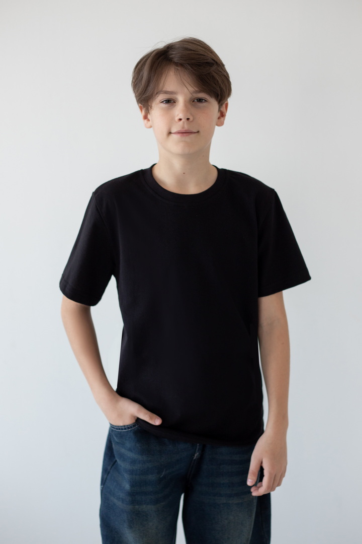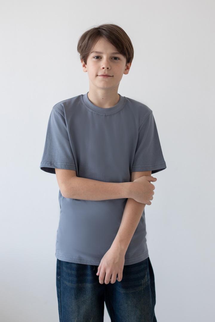 Класична футболка із куліру з округлою горловиною. Футболка стала незмінною річчю в гардеробі і дівчаток, і хлопчиків завдяки своїй універсальності. Полотно натуральне, тому в ньому дуже комфортно.