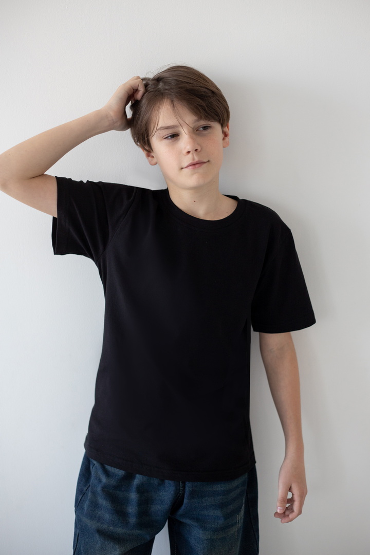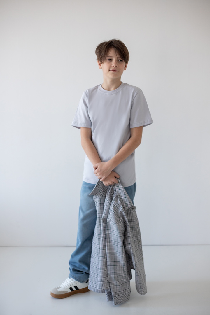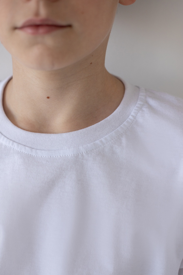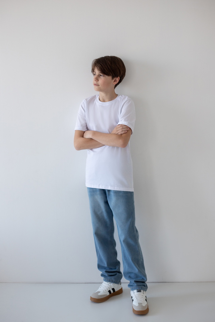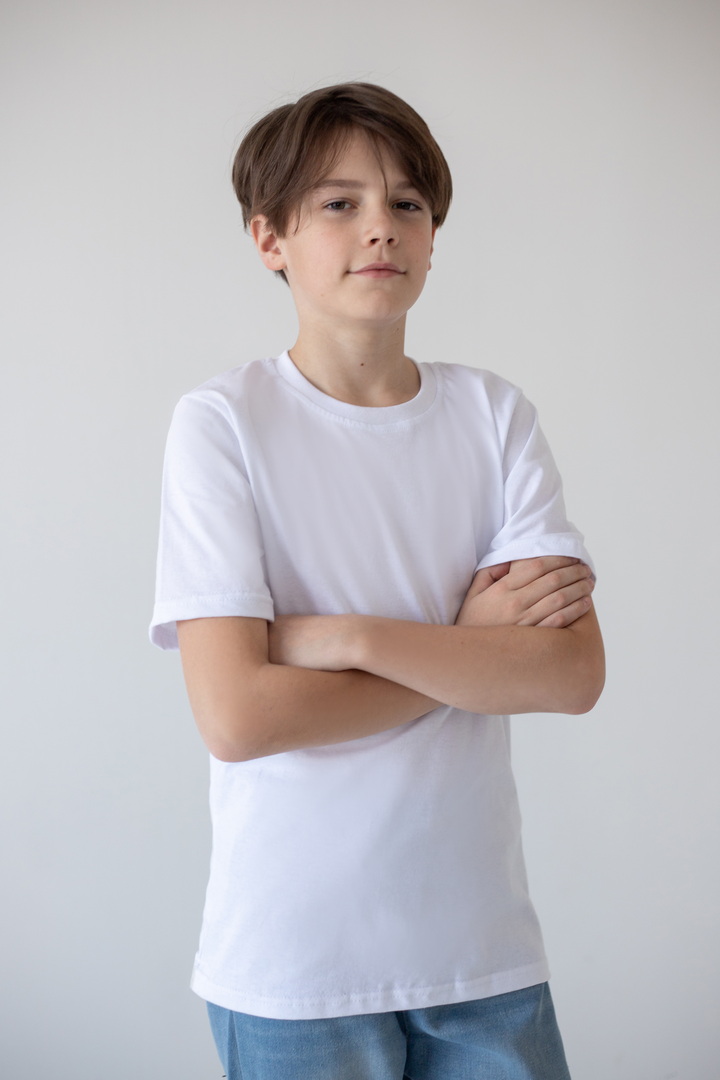 Класична футболка із куліру з округлою горловиною. Футболка стала незмінною річчю в гардеробі і дівчаток, і хлопчиків завдяки своїй універсальності. Полотно натуральне, тому в ньому дуже комфортно.