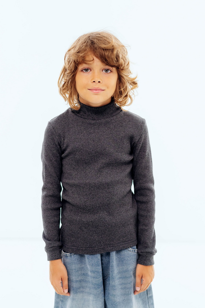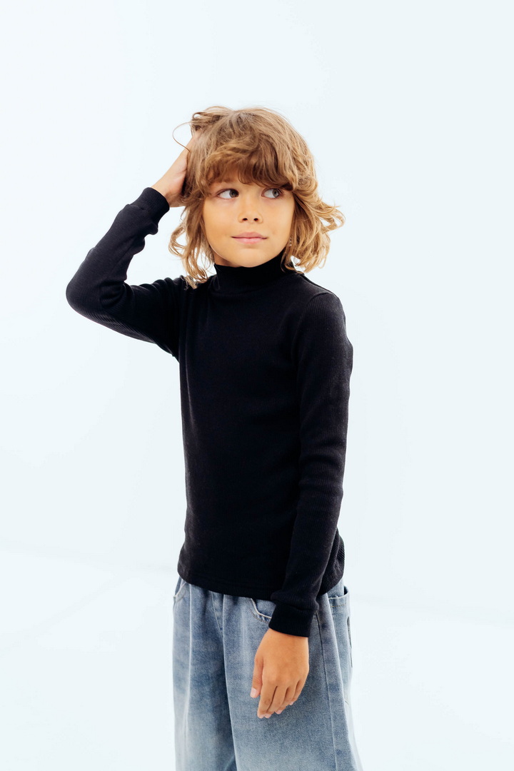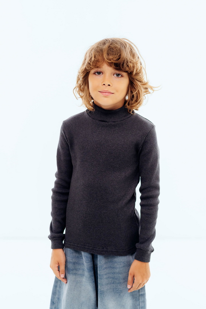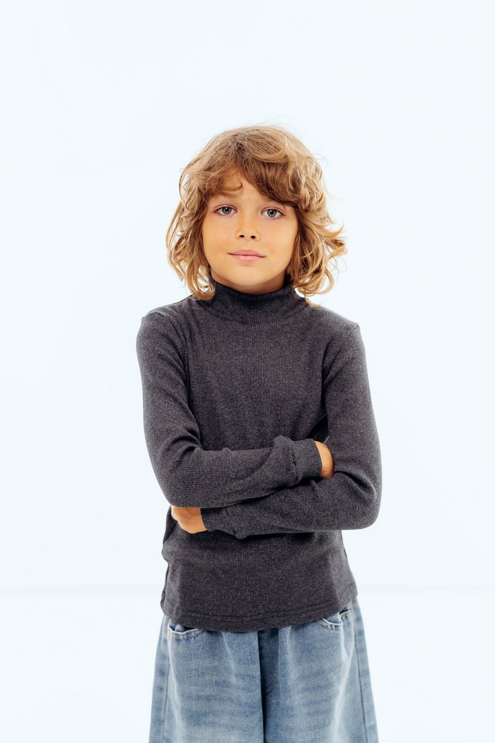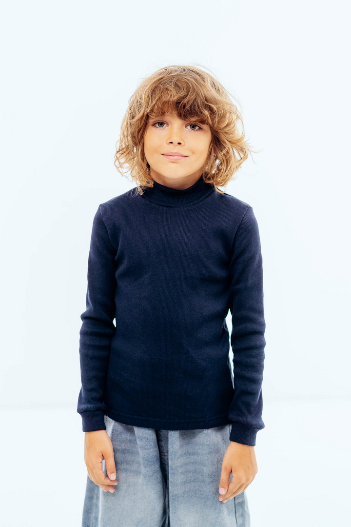 Базовий гольф для хлопчиків з еластичного полотна, має невеликий начос. Полотно м'яке, приємне до тіла, добре тримає форму.