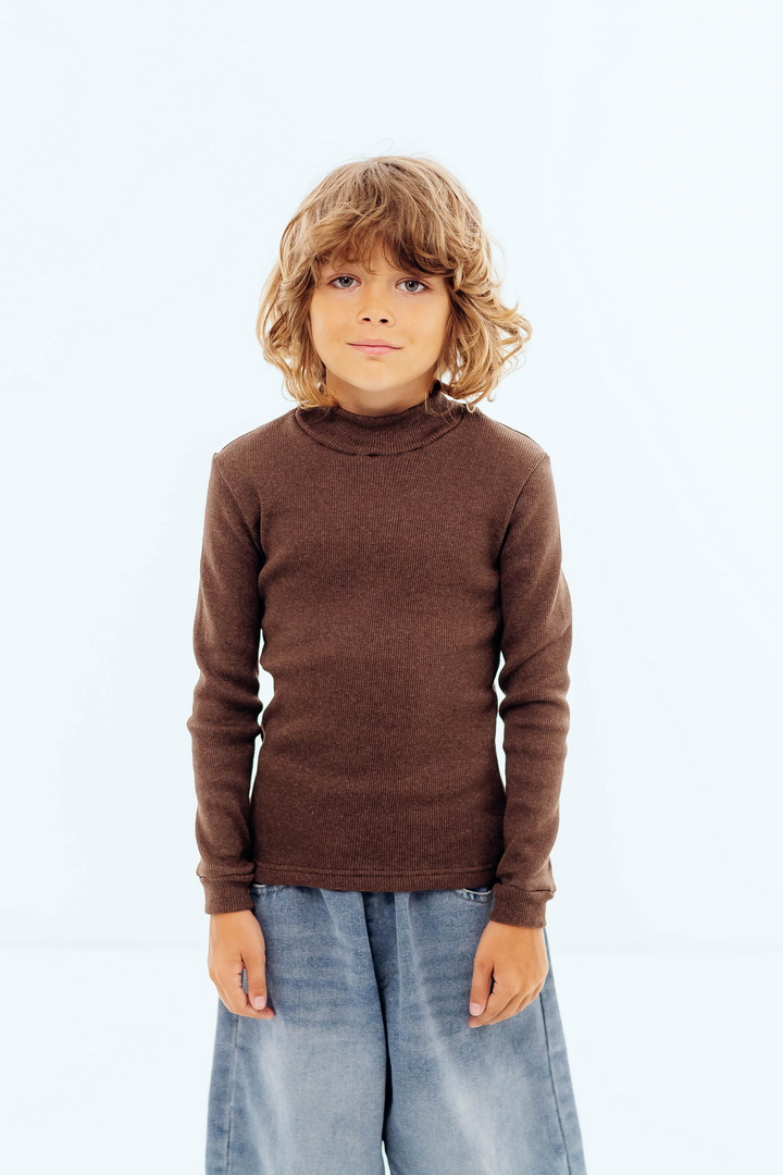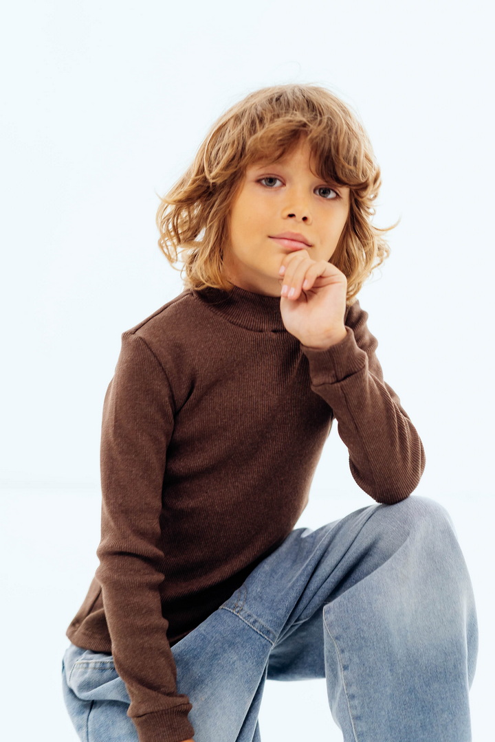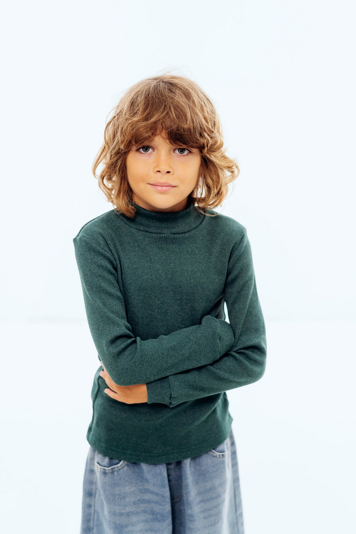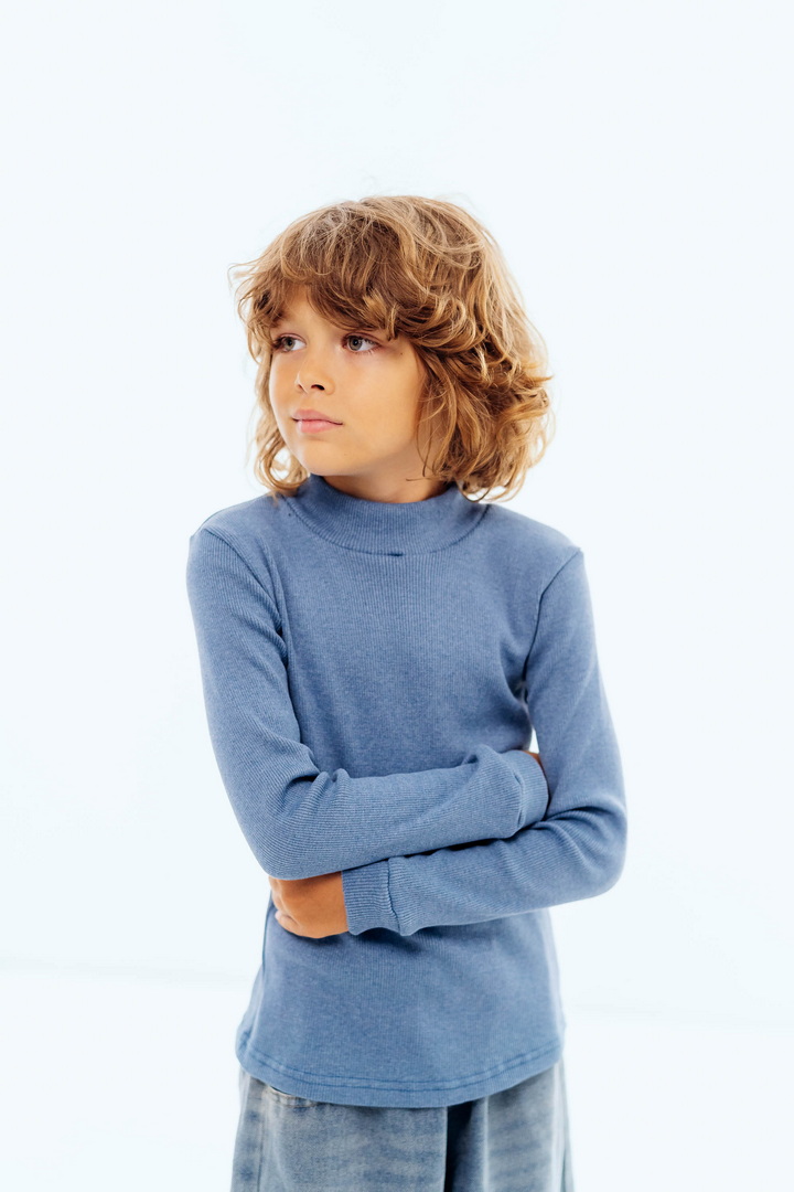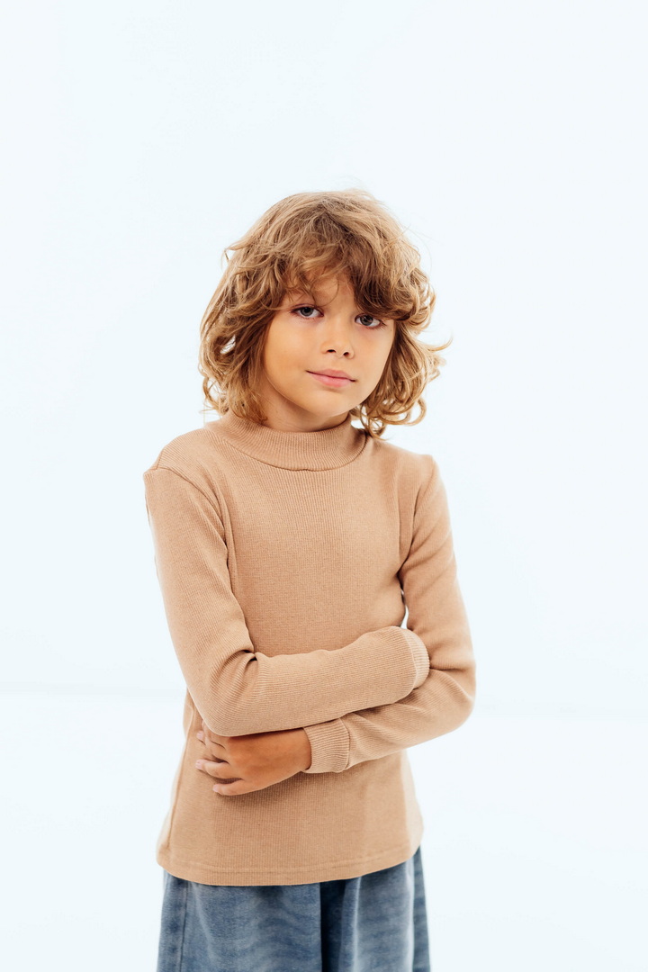 Базовий гольф для хлопчиків з еластичного полотна, має невеликий начос. Полотно м'яке, приємне до тіла, добре тримає форму.