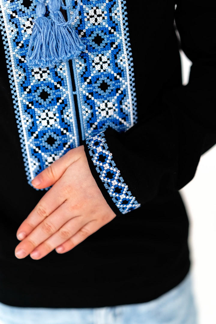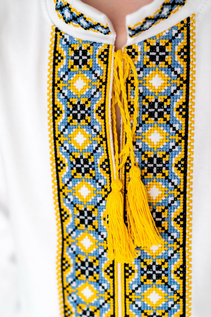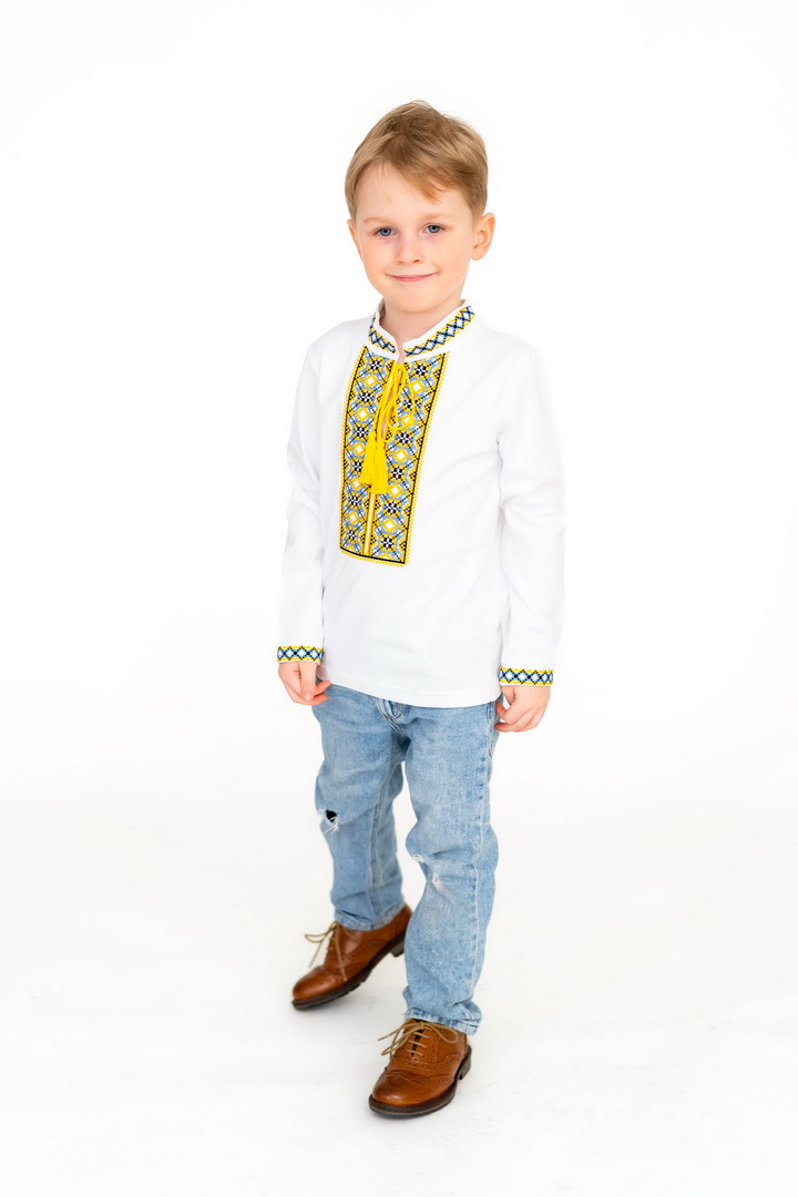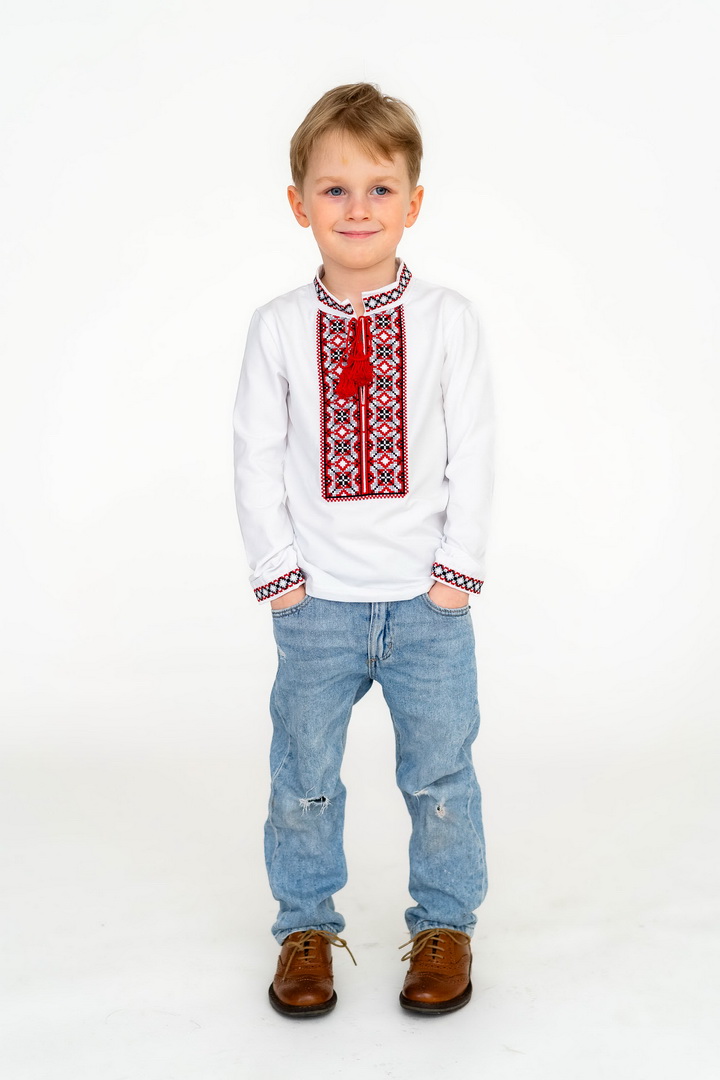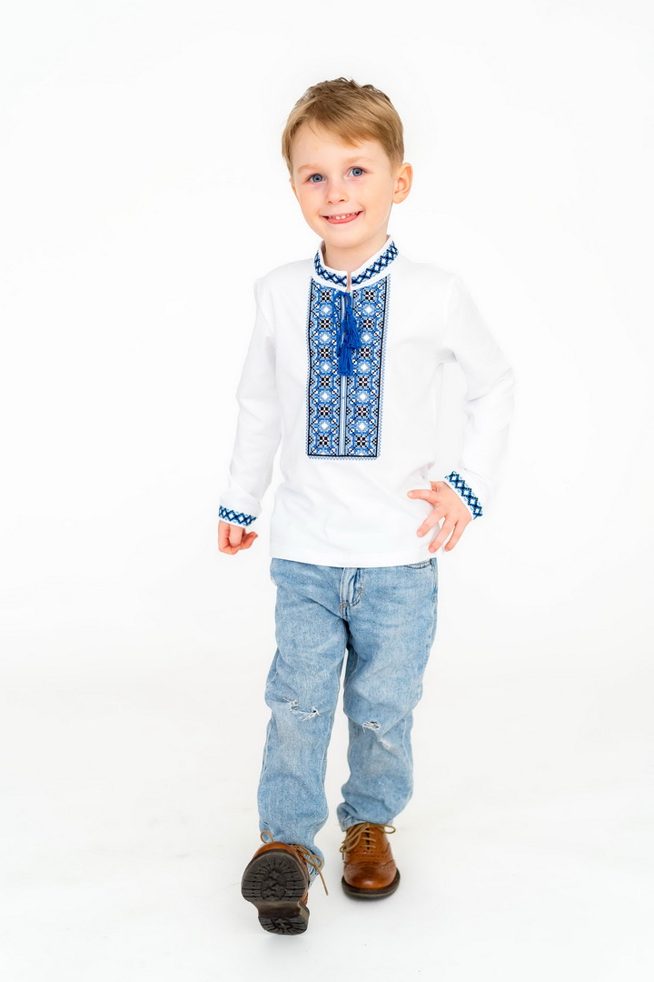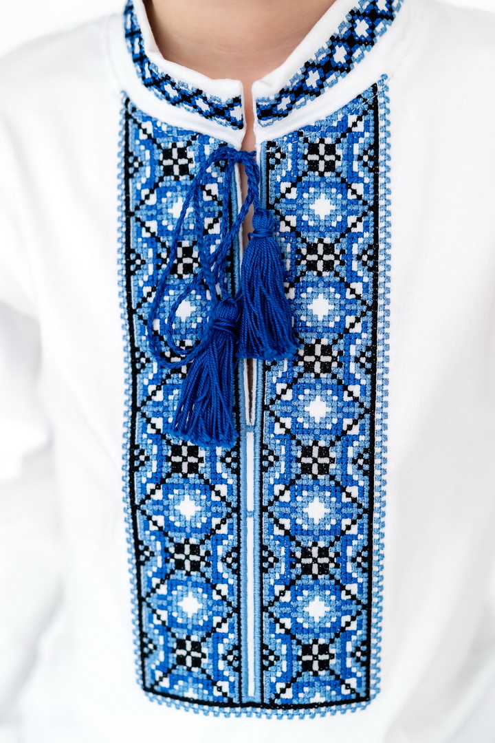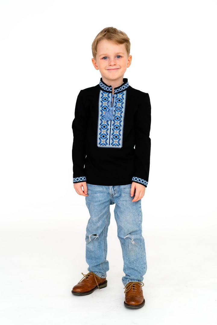 Ця вишиванка створена для хлопчика, який рухається, пізнає світ і водночас носить у собі український код. Вона поєднує традиційний орнамент і сучасний комфорт, щоб національний одяг був не лише святковим, а й зручним у щоденному житті. Основа виробу — стрейч-кулір пеньє преміальної якості. Тканина м’яка, приємна до тіла, не подразнює шкіру та зберігає охайний вигляд. Акцентна вишивка на грудях привертає увагу чіткістю ліній і глибиною кольорів. Геометричні мотиви читаються як символ сили, захисту й спадковості, а декоративне оздоблення манжетів завершує образ, роблячи його цілісним і продуманим. Комір зі шнурівкою додає виробу характеру. Ця вишиванка не «на один день». Вона органічно виглядає на шкільних заходах, родинних святах, фотосесіях і водночас легко вписується у повсякденний образ з джинсами чи брюками. Саме той випадок, коли традиція стає частиною щоденного стилю дитини.