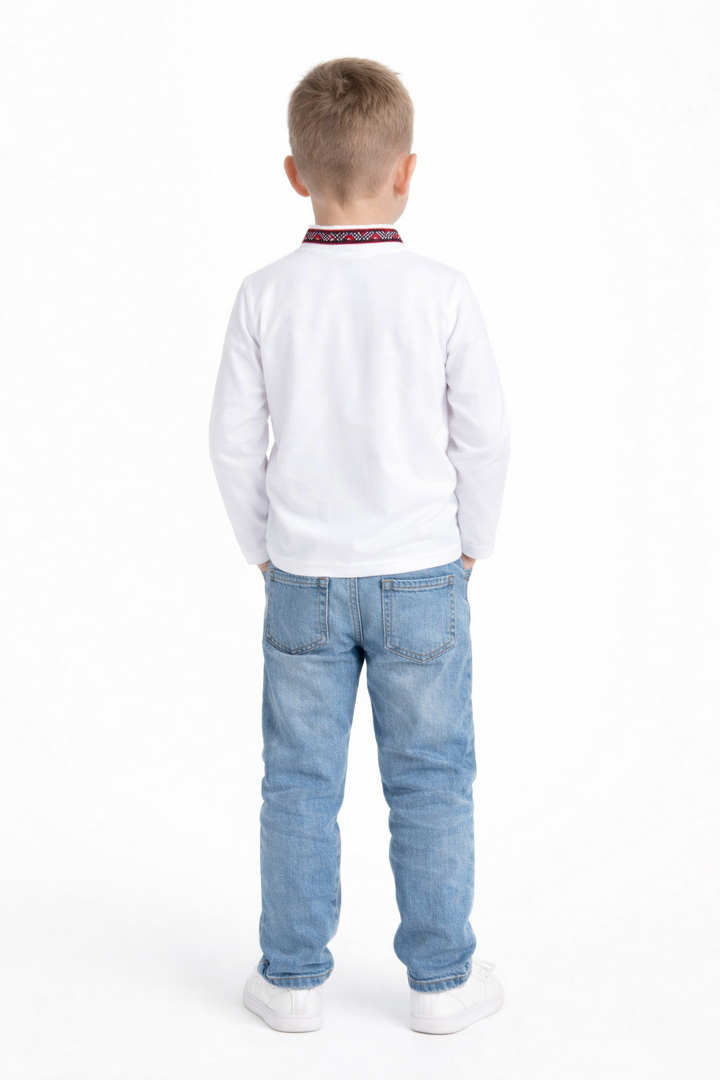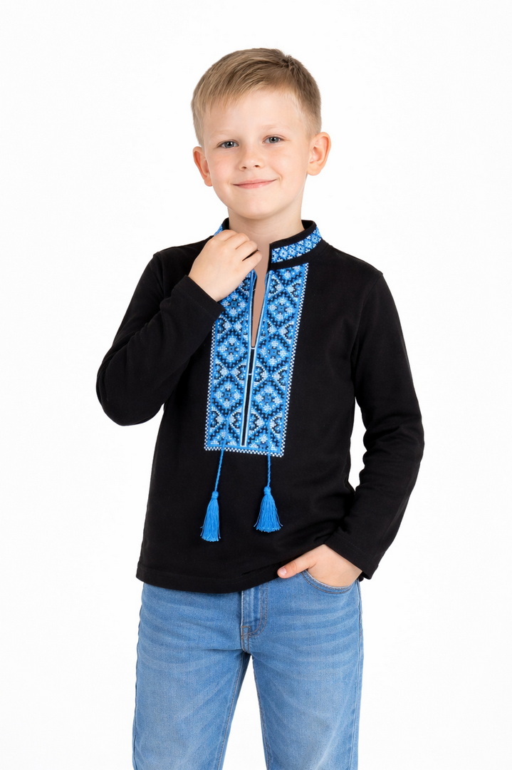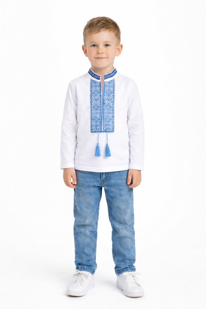 Ця вишиванка створена для хлопчиків, у яких уже живе характер, гордість і любов до українських традицій. Вона виглядає святково, але водночас залишається неймовірно зручною. М’який інтерлок ніжно огортає тіло, добре тягнеться, дозволяючи бігати, сміятися та бути собою. Тканина дихає, не парить і чудово тримає форму. Вишивка додає образу чистоти та світла, у традиційних мотивах акцентує український характер і стиль. Охайний комір-стійка зі шнурівкою та декоративними китицями виглядає по-справжньому урочисто, перетворюючи просту річ на символ родинних свят, шкільних подій і пам’ятних моментів. Довгий рукав робить вишиванку універсальною для будь-якої пори року. Обираючи цю вишиванку, ви даруєте дитині комфорт, стиль і частинку української душі.