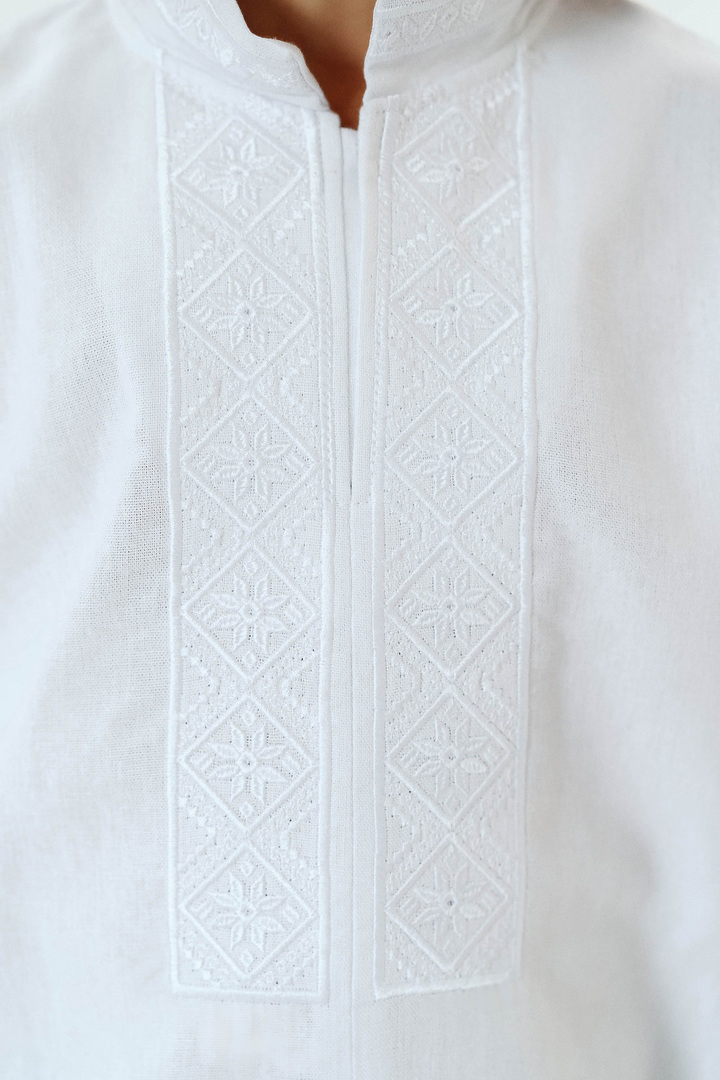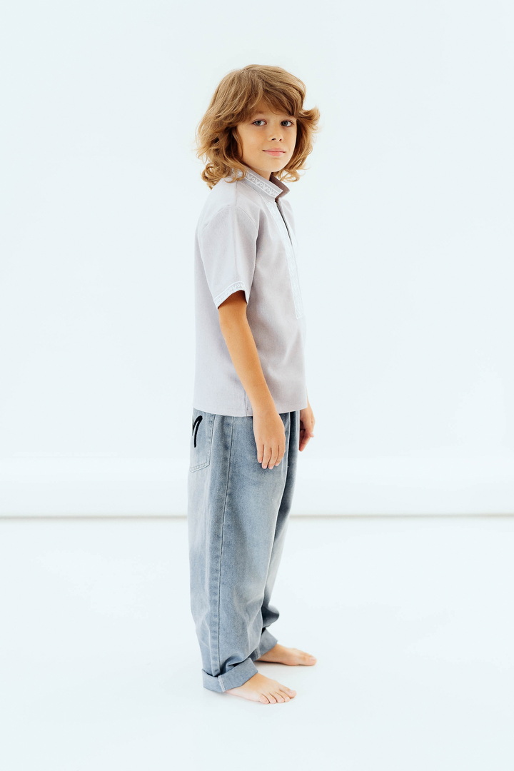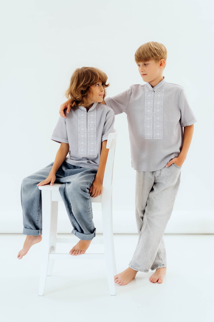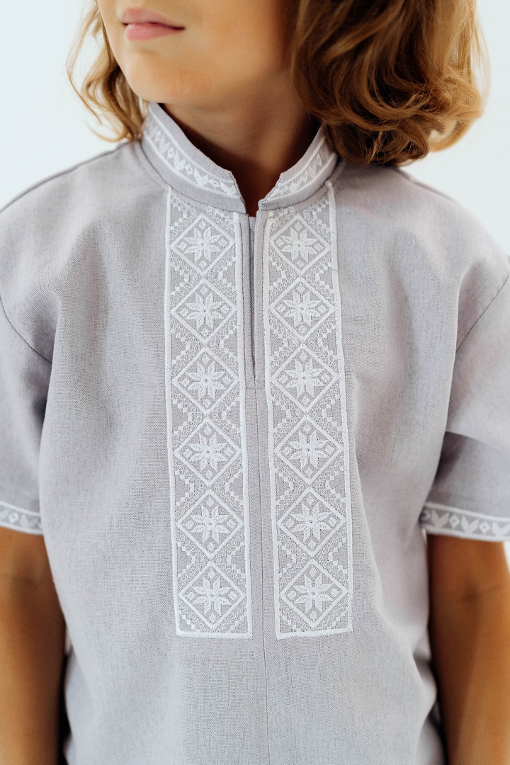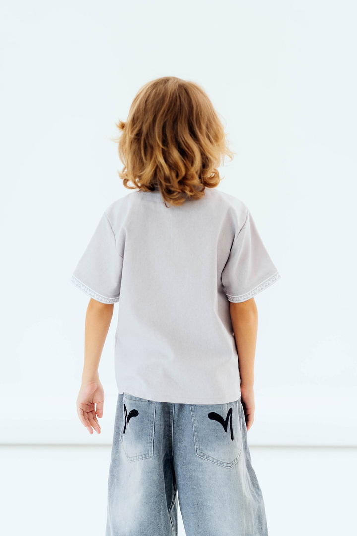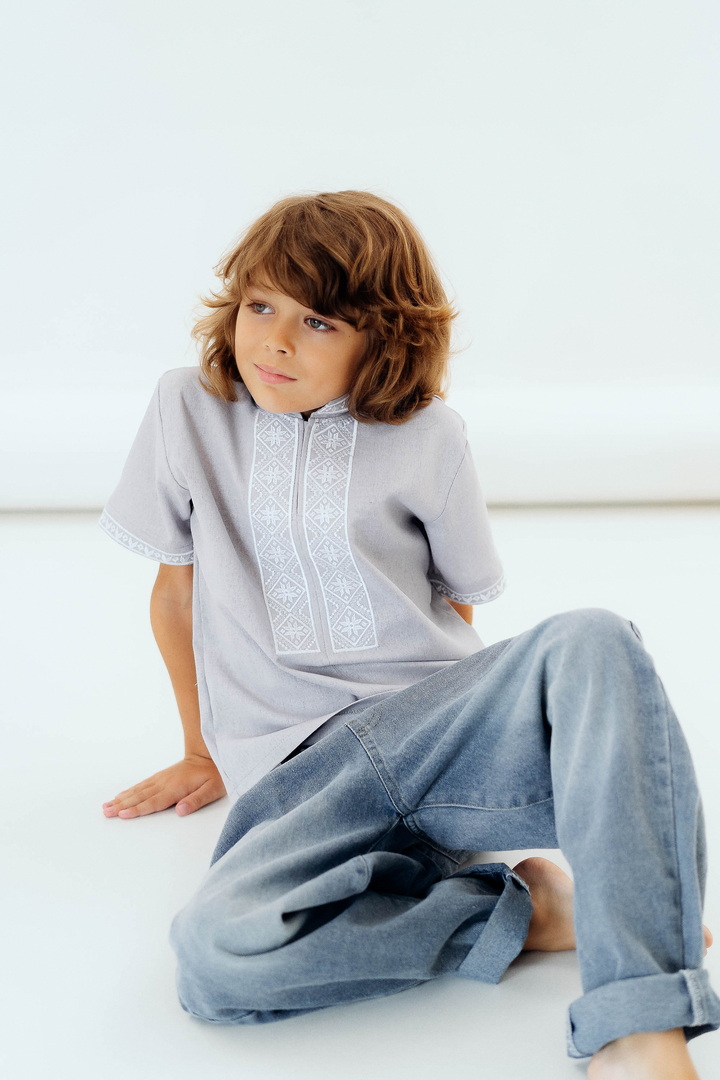 Стильна сорочка для хлопчика, що поєднує традиційні полтавські шви та сучасний дизайн. Ми зберегли автентичність орнаменту, але зробили його лаконічним та зручним для щоденного носіння.
