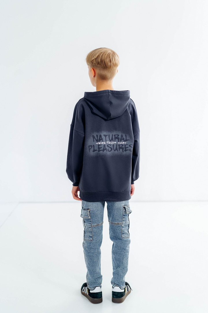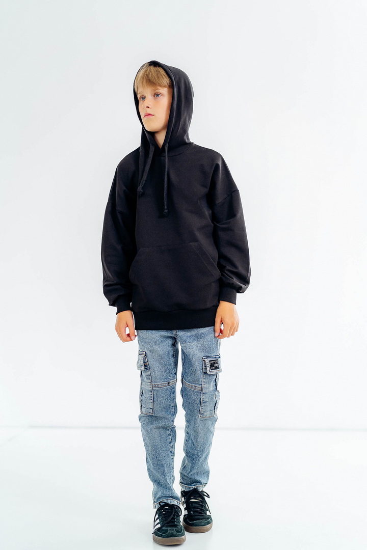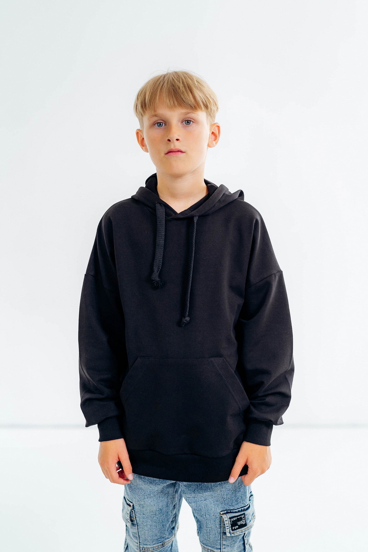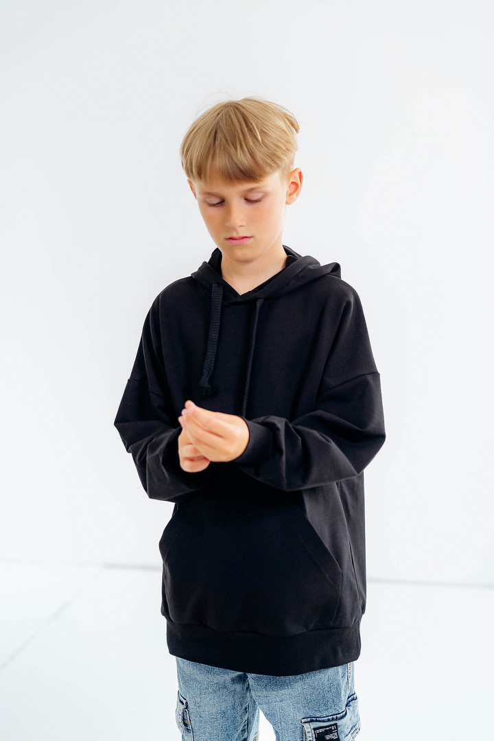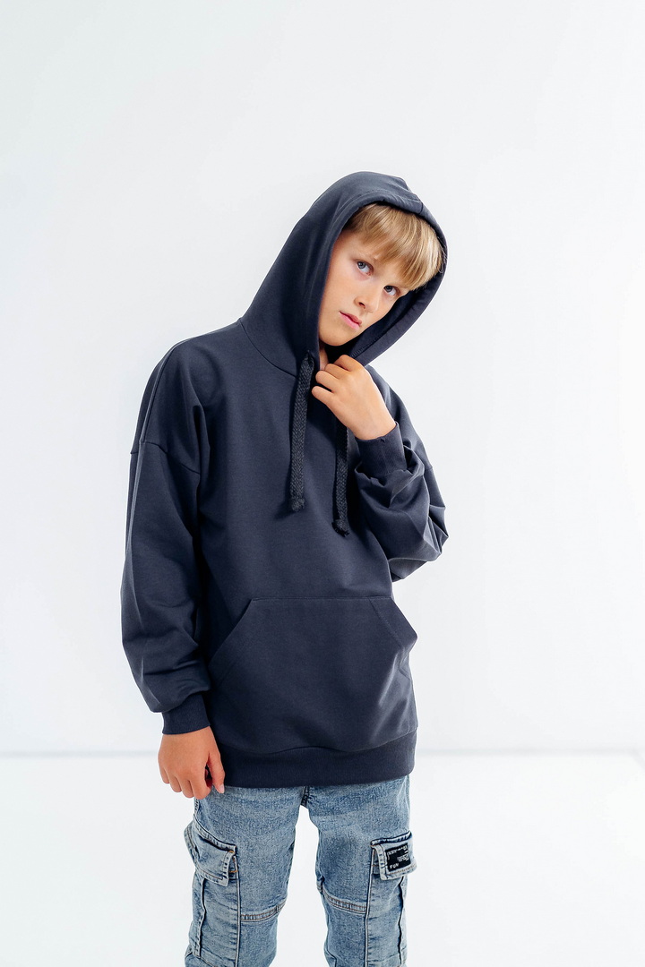 Худі oversize для підлітків виготовлений з однотонного полотна "Футер двонитковий", тканина м'яка та приємна до тіла, на спині розташований малюнок, нанесений методом шовкотрафаретного друку. Худі - це один з найпопулярніших видів толстовок, головні переваги - це вільний крій, капюшон, кишені на кшталт "Кенгуру", і додаткові шнурки для стяжки. Така річ є універсальною, може комбінуватися з будь-якими брюками, джинсами – виглядає стильно та є обов'язковим атрибутом у гардеробі незалежно від статі чи віку.