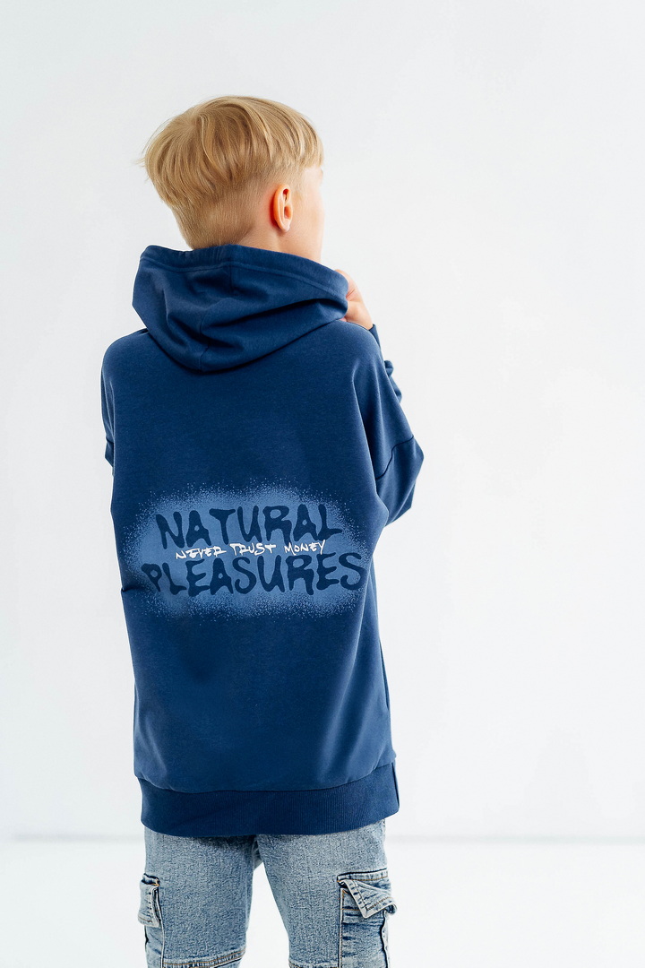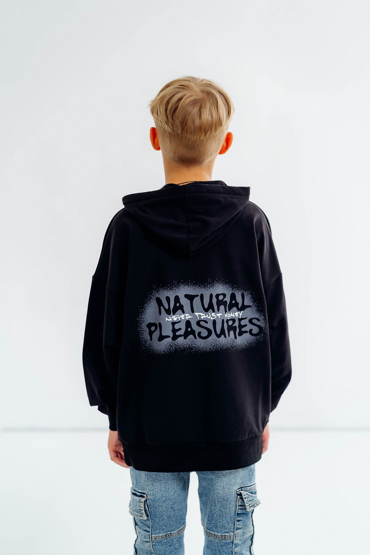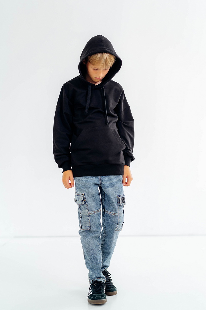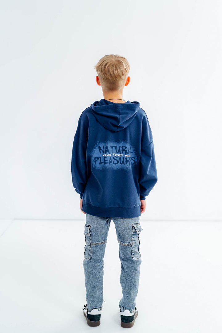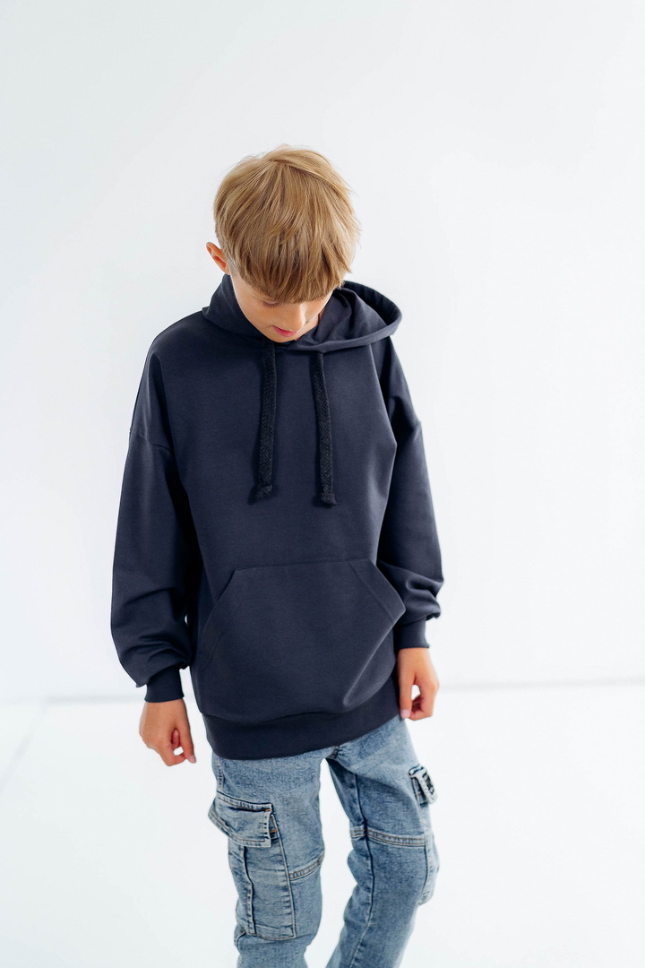 Худі oversize для підлітків виготовлений з однотонного полотна "Футер двонитковий", тканина м'яка та приємна до тіла, на спині розташований малюнок, нанесений методом шовкотрафаретного друку. Худі - це один з найпопулярніших видів толстовок, головні переваги - це вільний крій, капюшон, кишені на кшталт "Кенгуру", і додаткові шнурки для стяжки. Така річ є універсальною, може комбінуватися з будь-якими брюками, джинсами – виглядає стильно та є обов'язковим атрибутом у гардеробі незалежно від статі чи віку.
