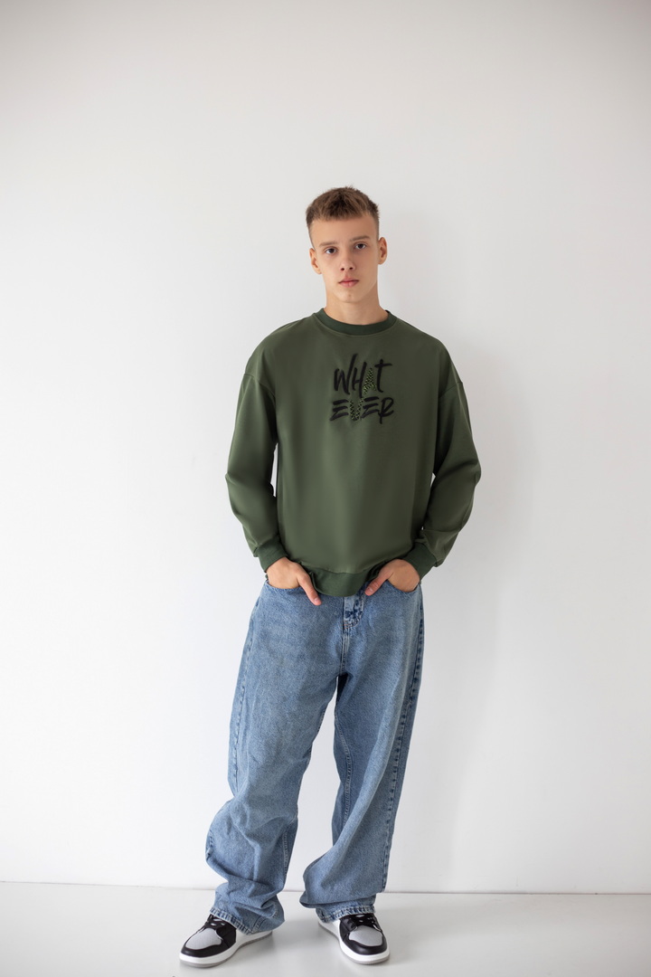 Світшот підлітковий виготовлений з полотна "Футер двонитковий". Стильна та актуальна модель вільного крою, низ та рукава на еластичних манжетах. Таку річ можна поєднувати з брюками, джинсами та з будь-яким взуттям.