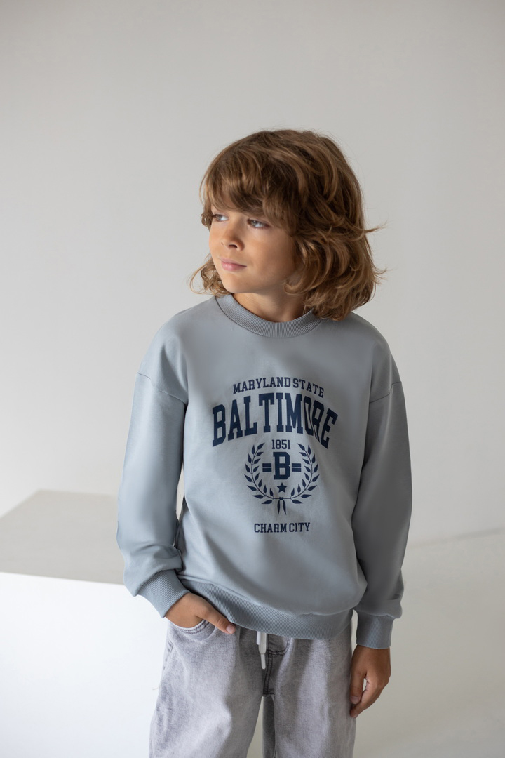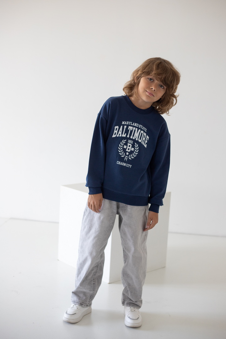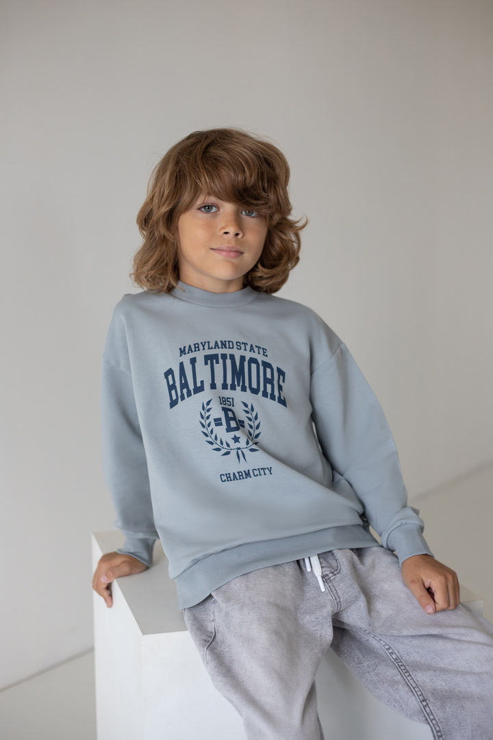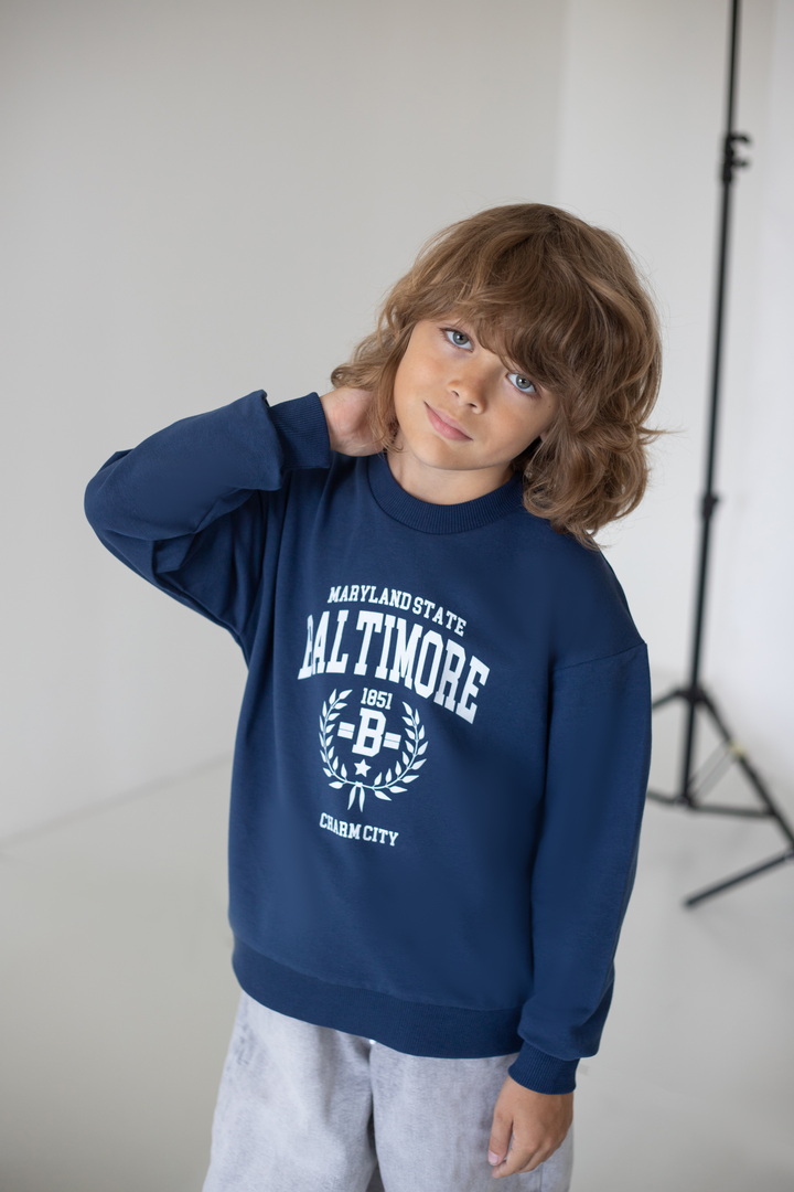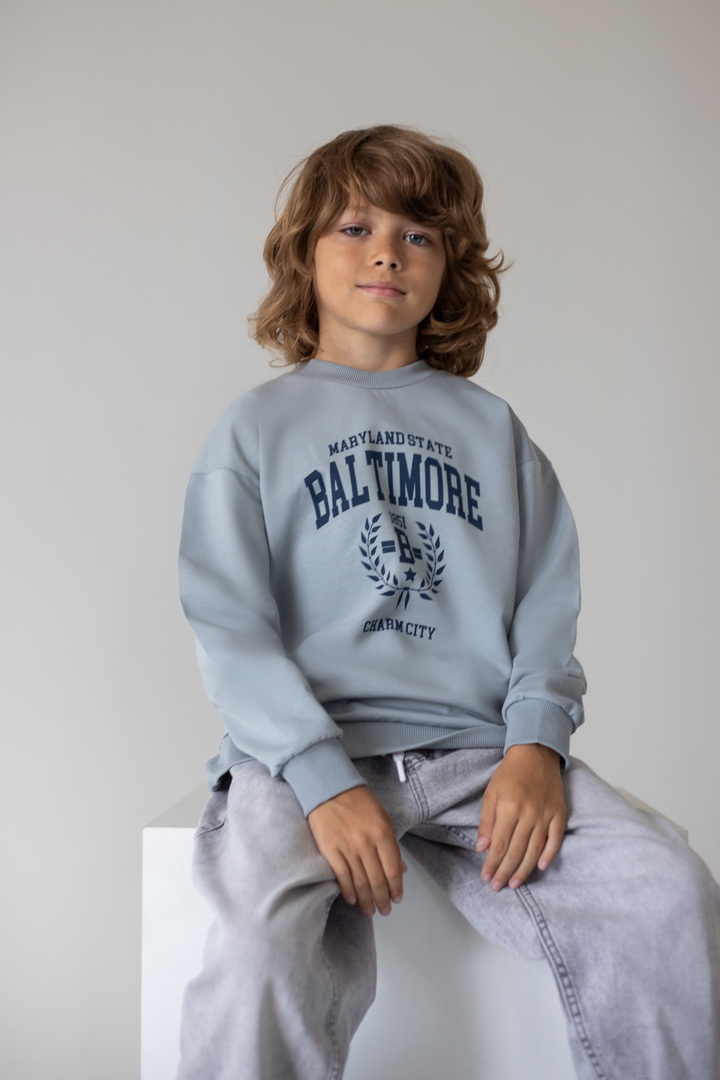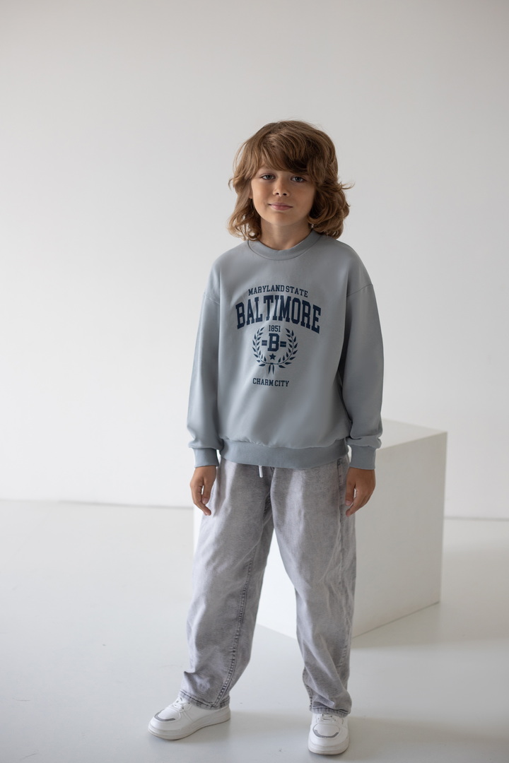 Світшот виконаний з двониткового футера. Полотно натуральне, приємне до тіла. Модель з округлою горловиною, манжети, горловина і по низу - приклад зі стрейчу. Модель добре підійде до спортивних штанів, джинсів, штанів.