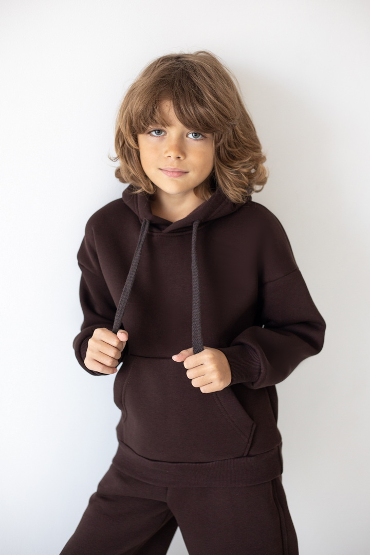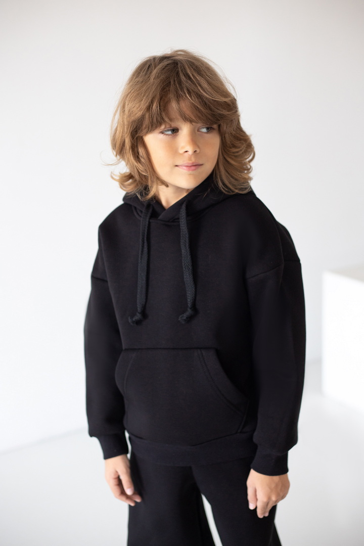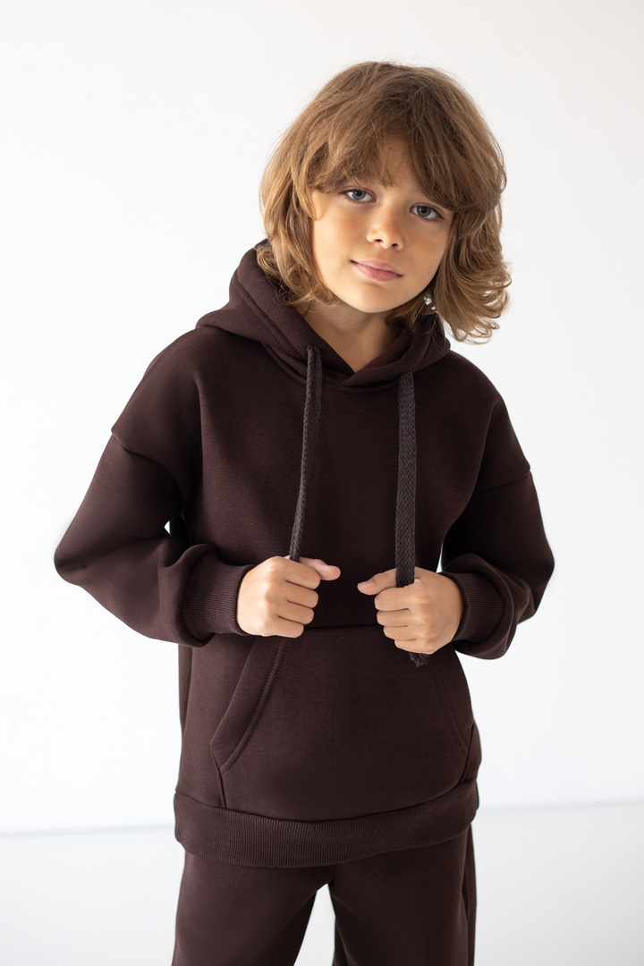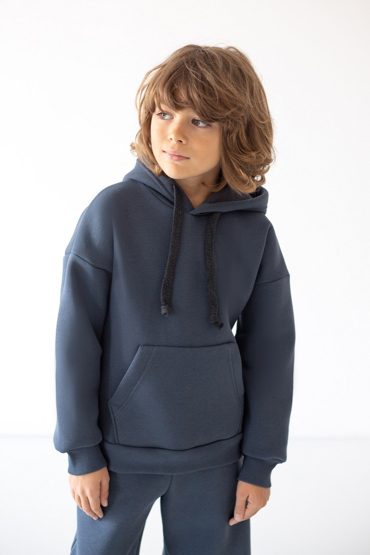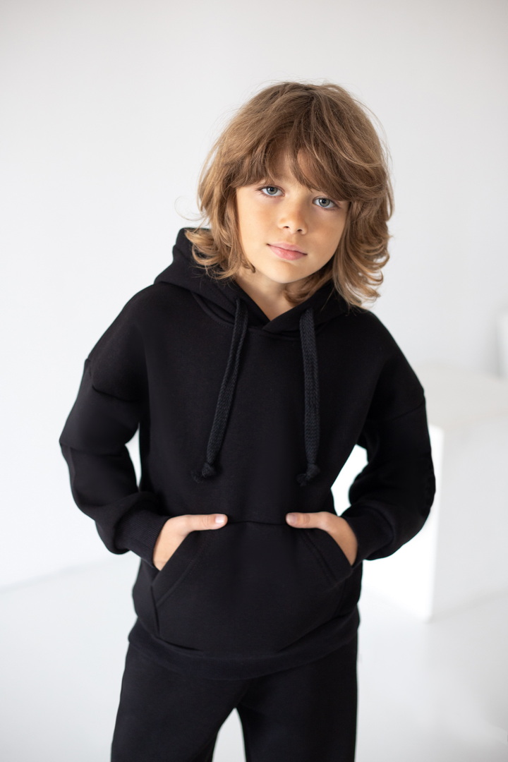 Зручне худі для хлопчиків з капюшоном — ідеальний варіант для щоденного носіння. Виріб виконаний із м’якої та приємної на дотик тканини " тринитковий футер з начосом", що забезпечує комфорт і тепло у прохолодну погоду. Модель має вільний крій, кишеню-кенгуру та еластичні манжети на рукавах і по низу, що гарантує гарну посадку. Підходить як для школи, прогулянок, так і для активного відпочинку.