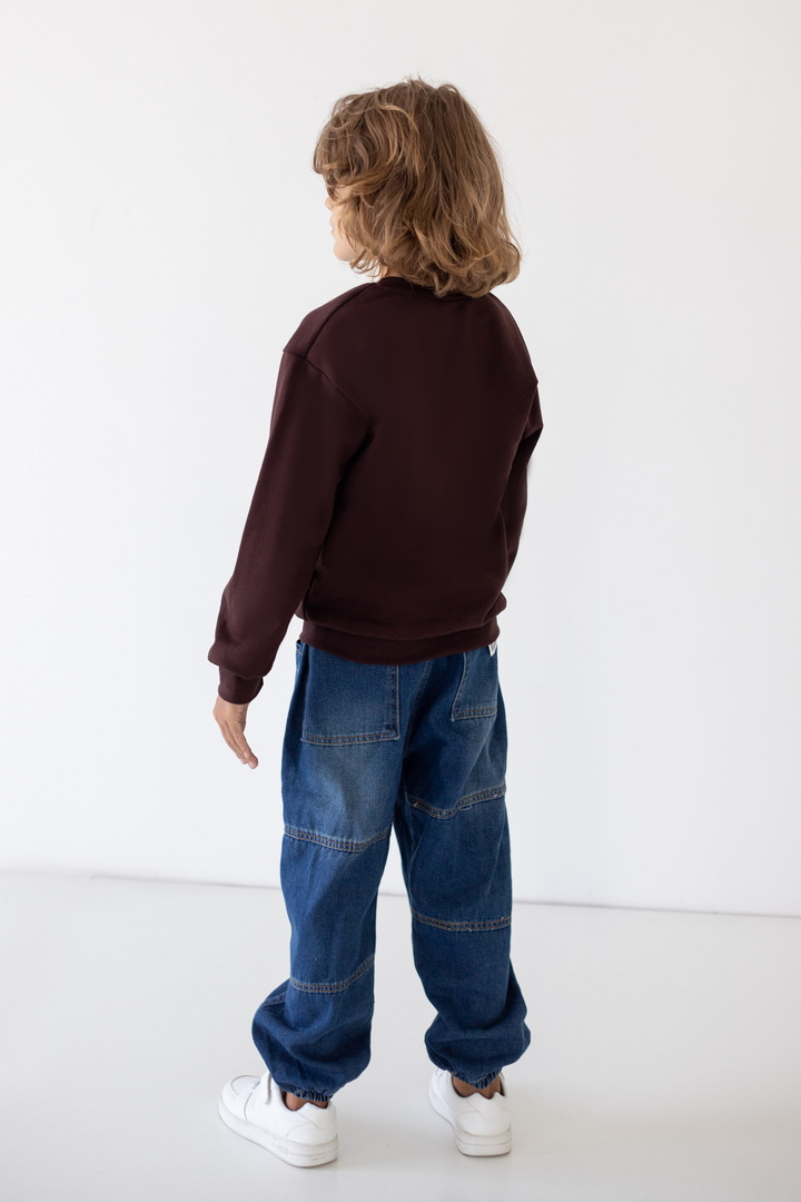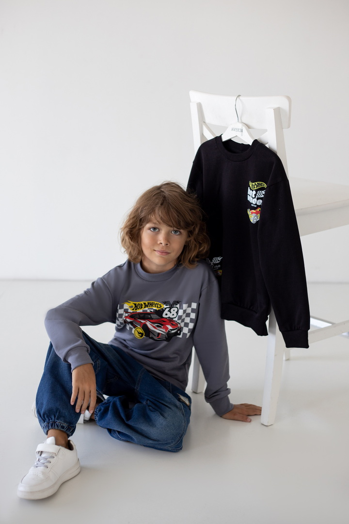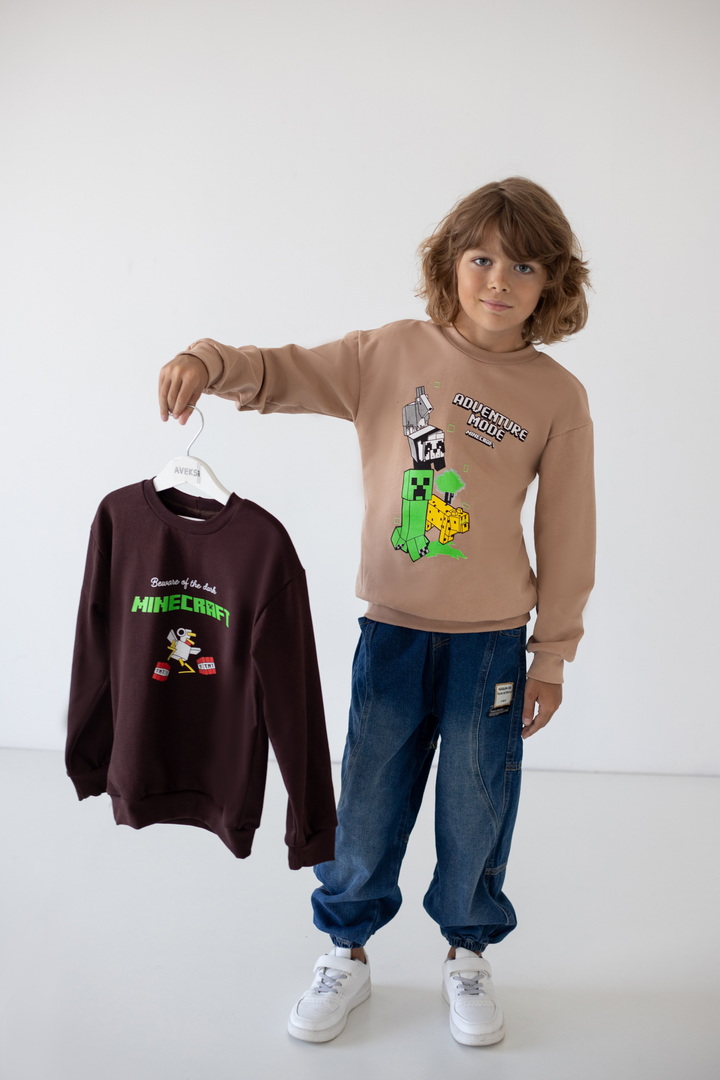 Комплект виконаний з футера з начосом. Полотно натуральне, тепле, приємне до тіла. Модель з округлою горловиною, манжети, горловина і по низу - приклад зі стрейчу. Рукав - реглан. Модель добре підійде до спортивних штанів, джинсів, штанів.