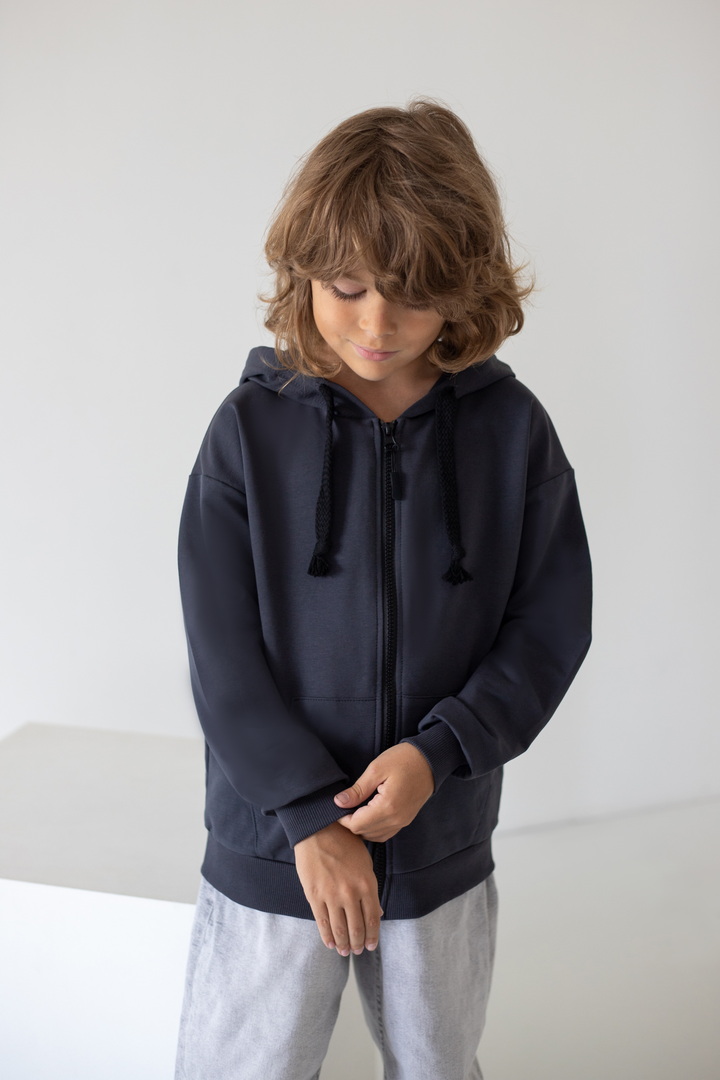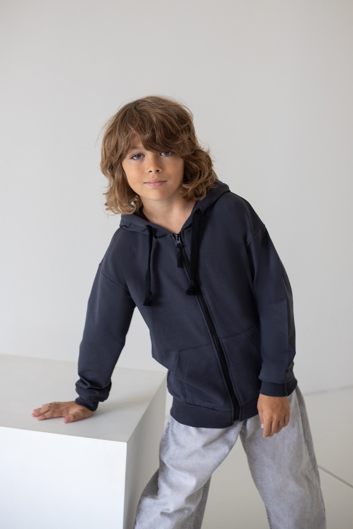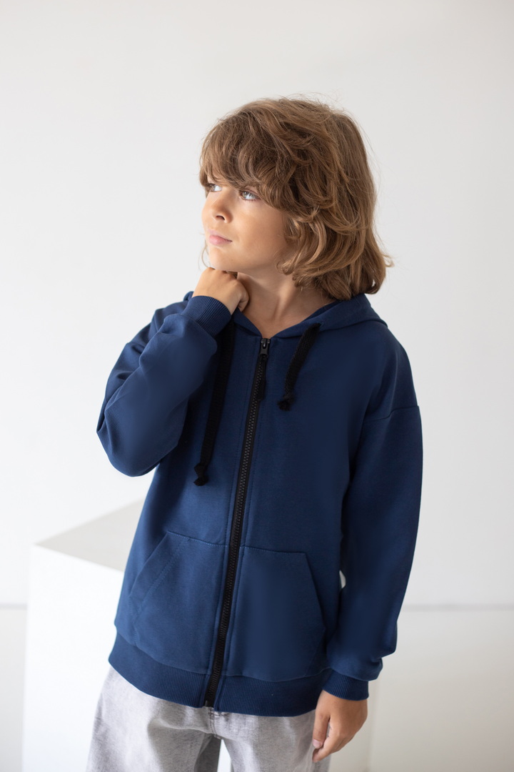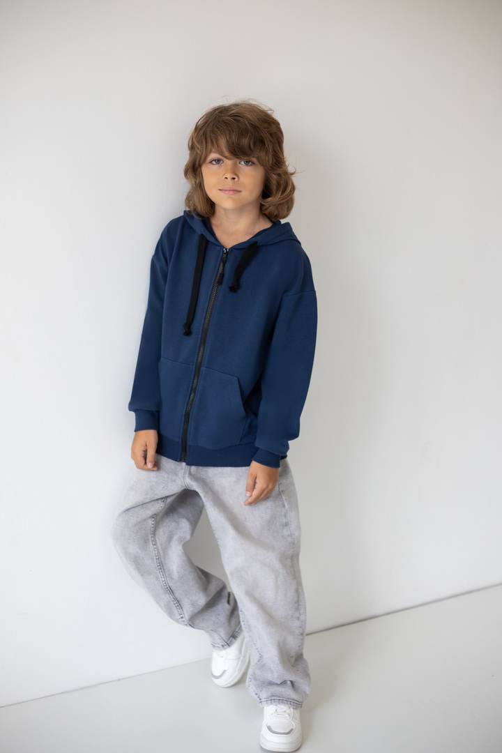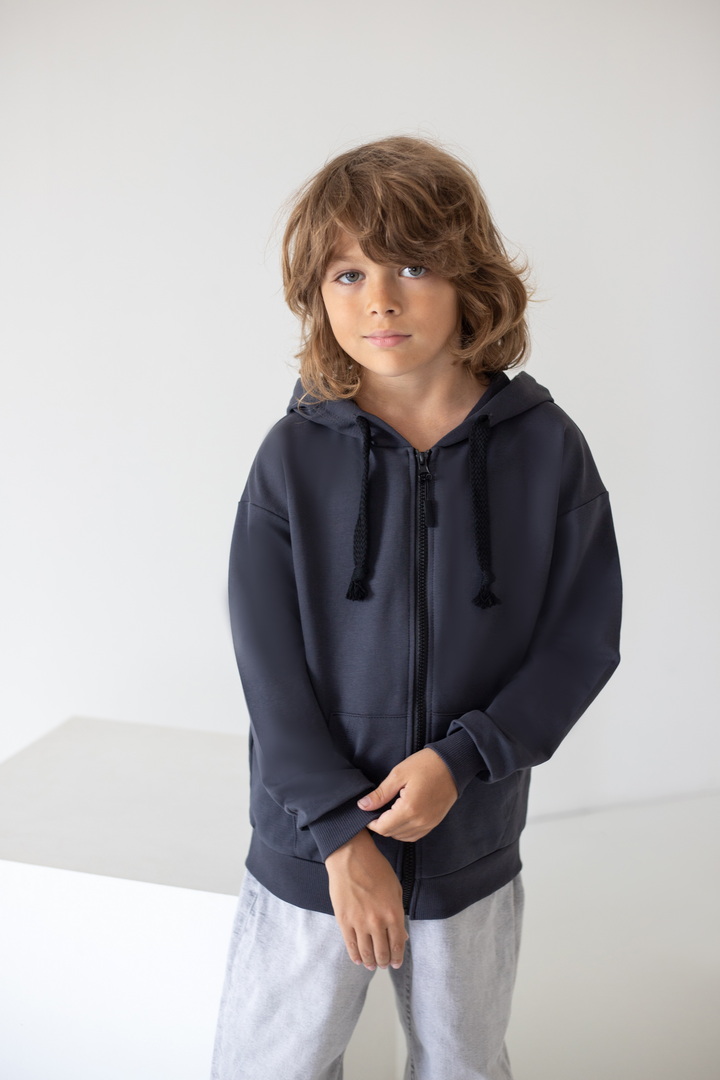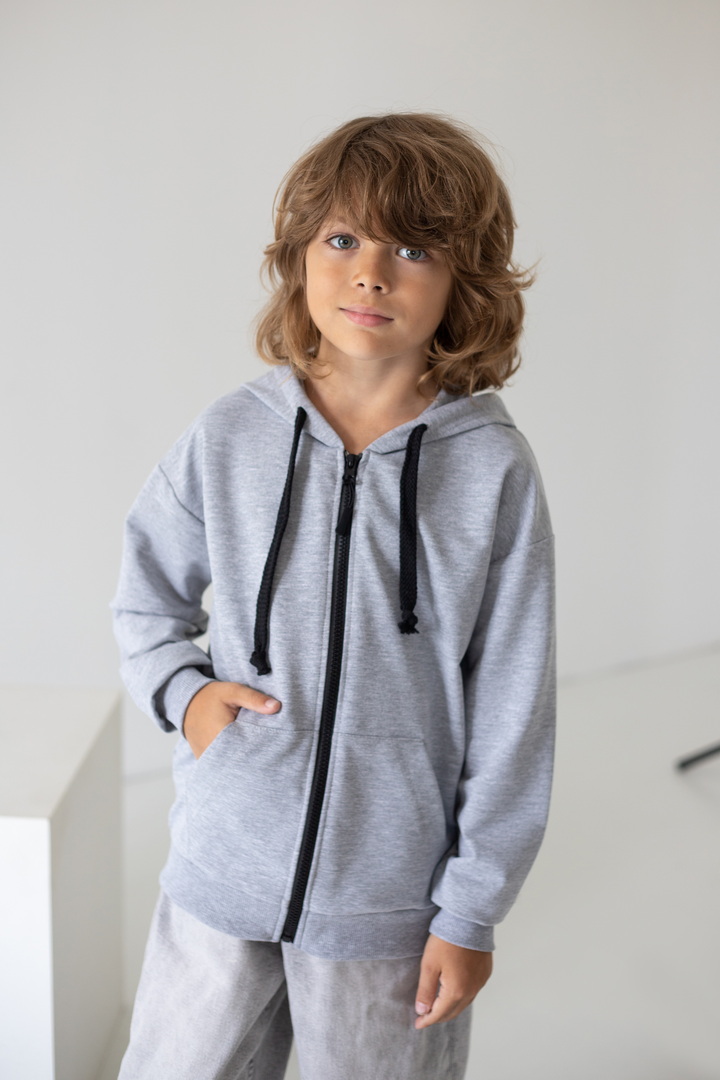 Є речі, які одразу стають улюбленими. Саме такою є ця стильна толстовка для хлопчиків — універсальна, зручна та неймовірно практична. Вона створена для активного дитинства, коли кожен день наповнений рухом, пригодами, прогулянками та новими відкриттями. Толстовка виготовлена з якісного двониткового футера — тканини, яка ідеально поєднує м’якість та тепло. Зручна застібка на блискавці дозволяє швидко одягати та знімати толстовку, а стильний капюшон захищає від вітру та прохолоди. Місткі кишені додають практичності — у них можна сховати руки або взяти із собою дрібні скарби, які так люблять діти. Сучасний крій виглядає стильно та охайно та дарує відчуття повної свободи. Ця толстовка — не просто одяг. Це комфорт, турбота, тепло і стиль, які супроводжують дитину щодня.