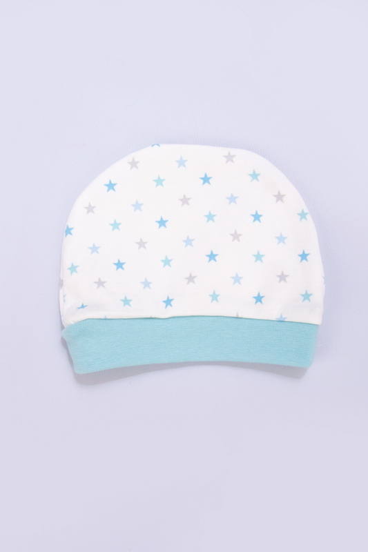 Шапка для малюків з принтованого інтерлока пеньє. Модель виконано з манжетом з еластичного полотна. Інтерлок досить щільний, натуральний за складом, м'який і дуже приємний на дотик - ідеальний варіант для ніжної шкіри малюка. При правильному догляді дає незначну усадку після прання.