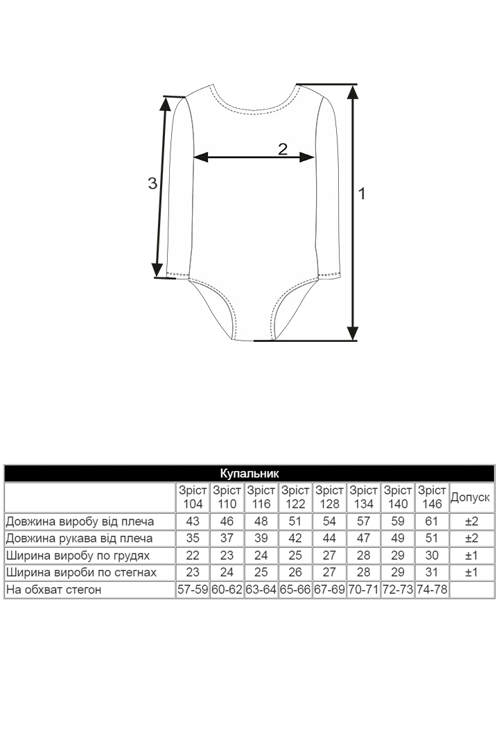 | Зріст 104 | Зріст 110 | Зріст 116 | Зріст 122 | Зріст 128 | Зріст 134 | Зріст 140 | Зріст 146 | Допуск | |||||||