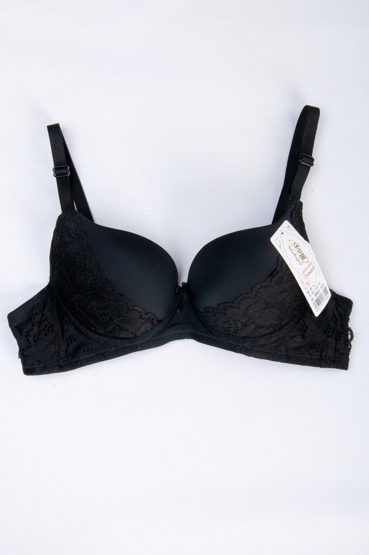 Бюстгальтер із формованими чашками та кісточками, прикрашений мереживними вставками з боків і на нижній частині чашок.