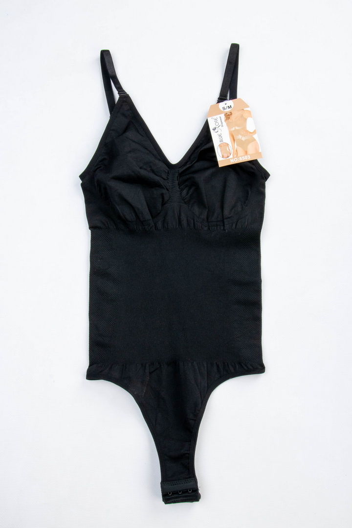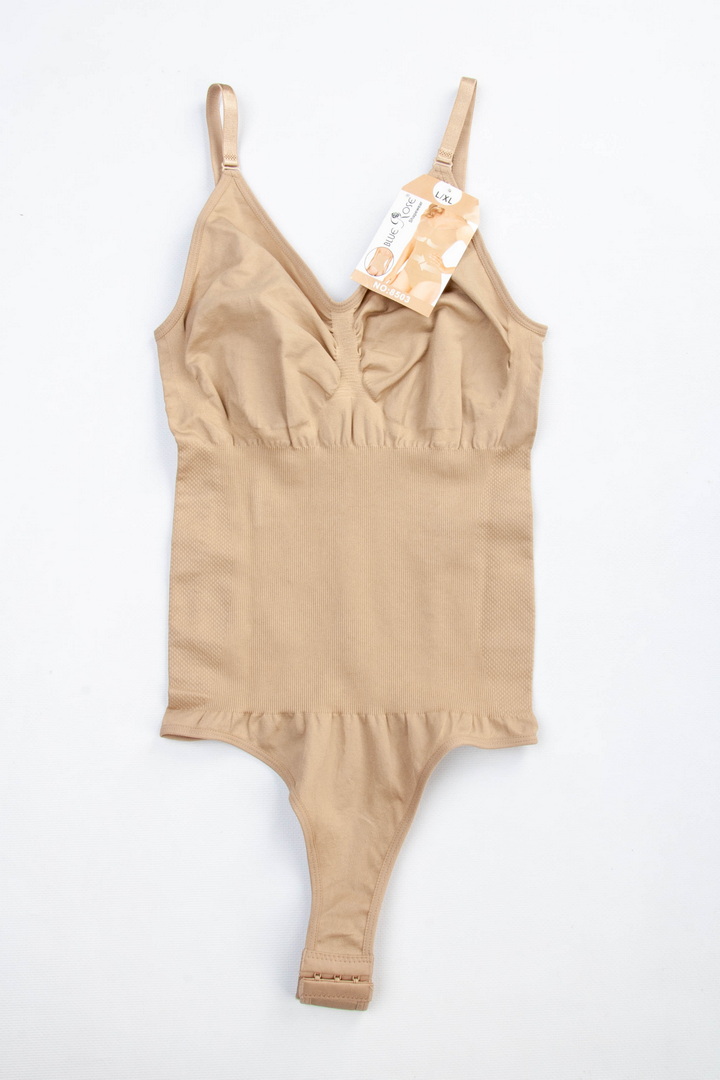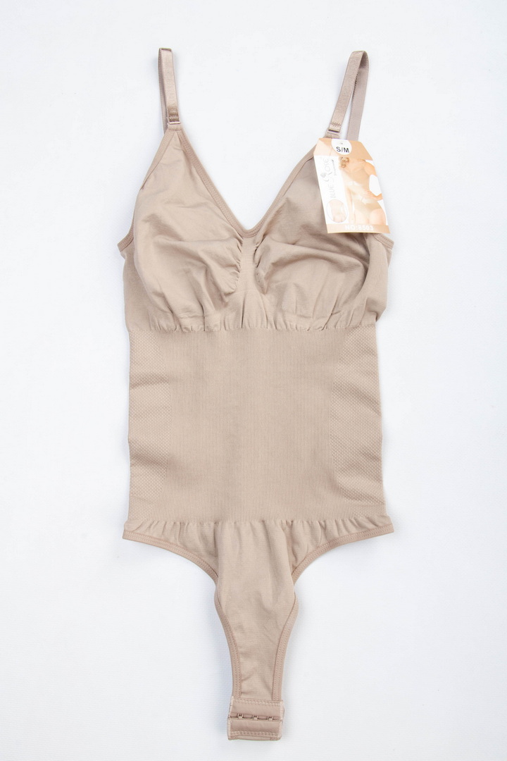Боді з міцного еластичного матеріалу з вираженим ефектом, що стягує і коригує. Тонкі бретелі регулюються по довжині для зручної посадки. Область живота посилена додаткового моделювання силуету. Між ніг застібка на гачках з кількома рівнями регулювання довжини забезпечує комфорт та практичність.