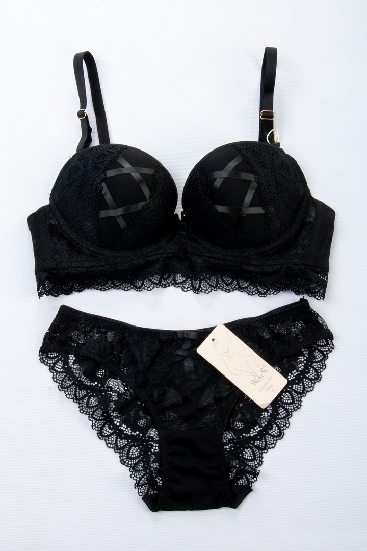 Ажурний бюстгальтер на поролоні Бретель – знімна, регулюється, спина – ажурна. Застібка на 3 гачки на 4 позиції. Трусики на середній посадці.