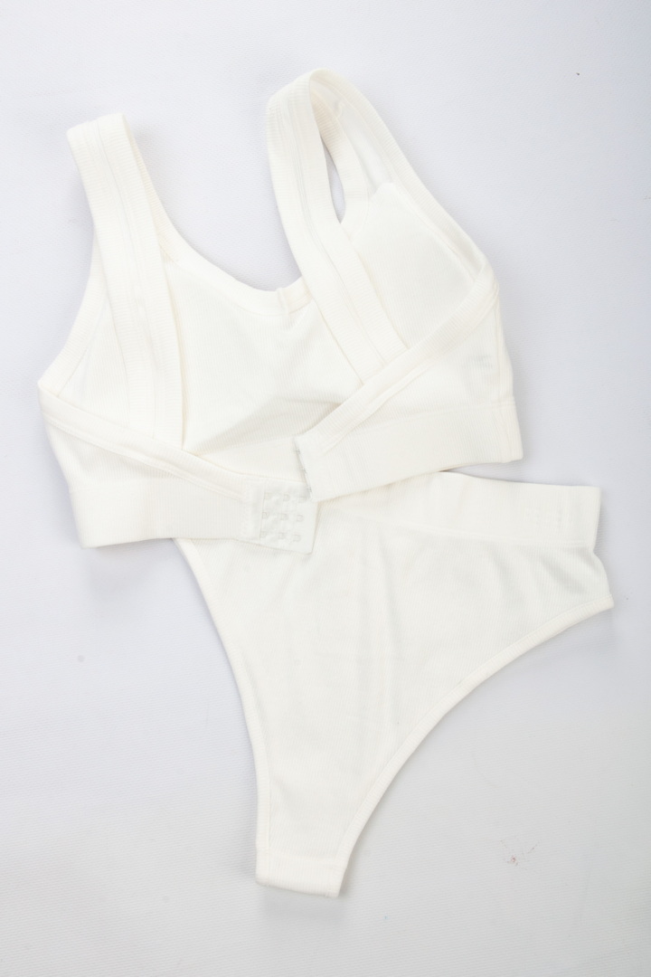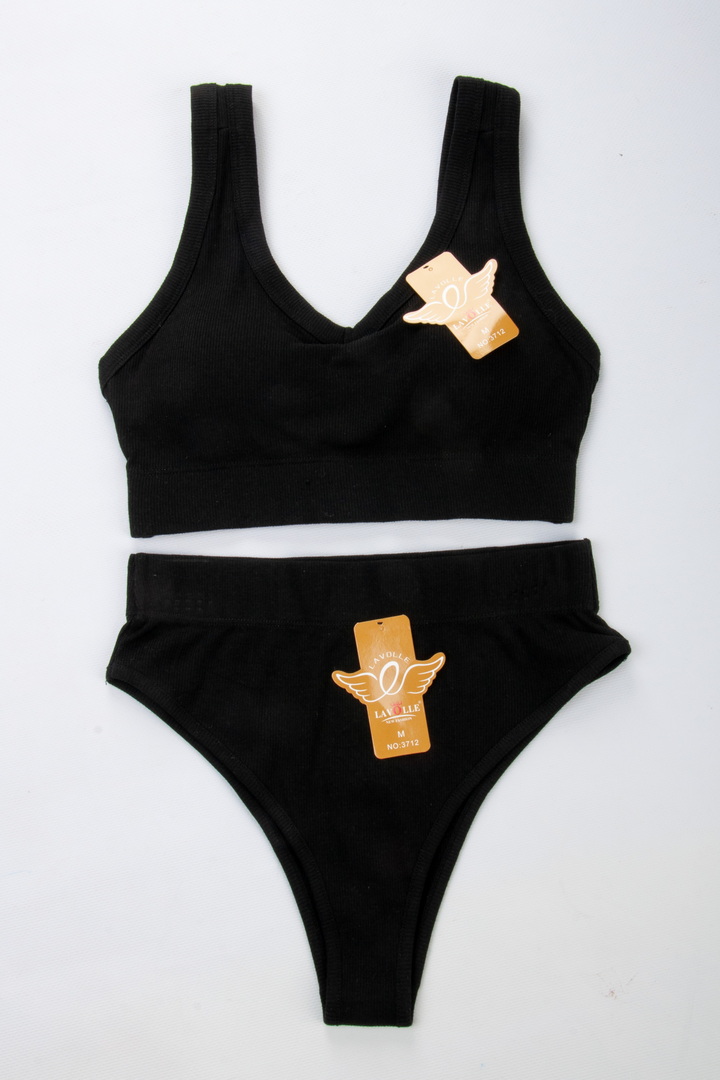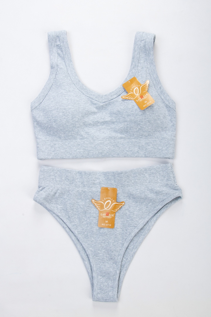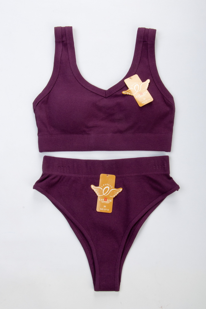 Базовий комплект в рубчик, що складається з топ-бюстгальтера і трусів-тангу - зручна і стильна білизна, що ідеально підходить для повсякденного носіння.