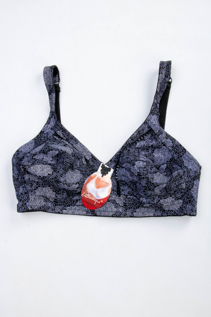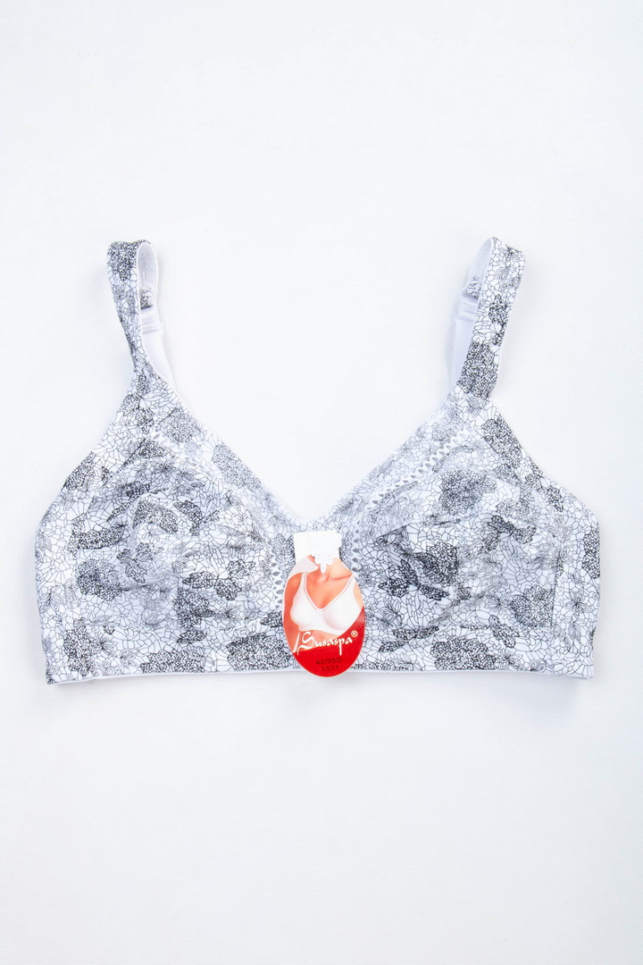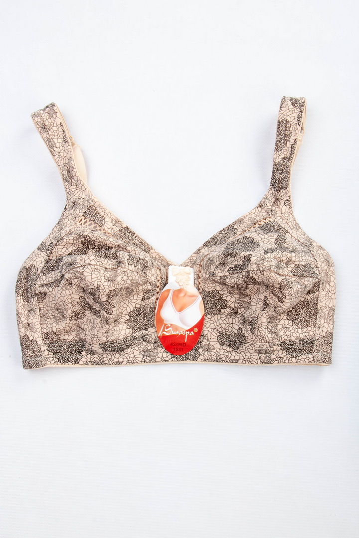 Бюстгальтер з м'якими чашками без поролону і кісточок забезпечує максимальний комфорт і природну посадку. Модель виконана з натуральної бавовни — приємної до тіла, дихаючої і добре тримає форму. Широкі незнімні бретелі з регулюванням по довжині рівномірно розподіляють навантаження. На спинці класична застібка - 3 гачки/3 рівні подовження.