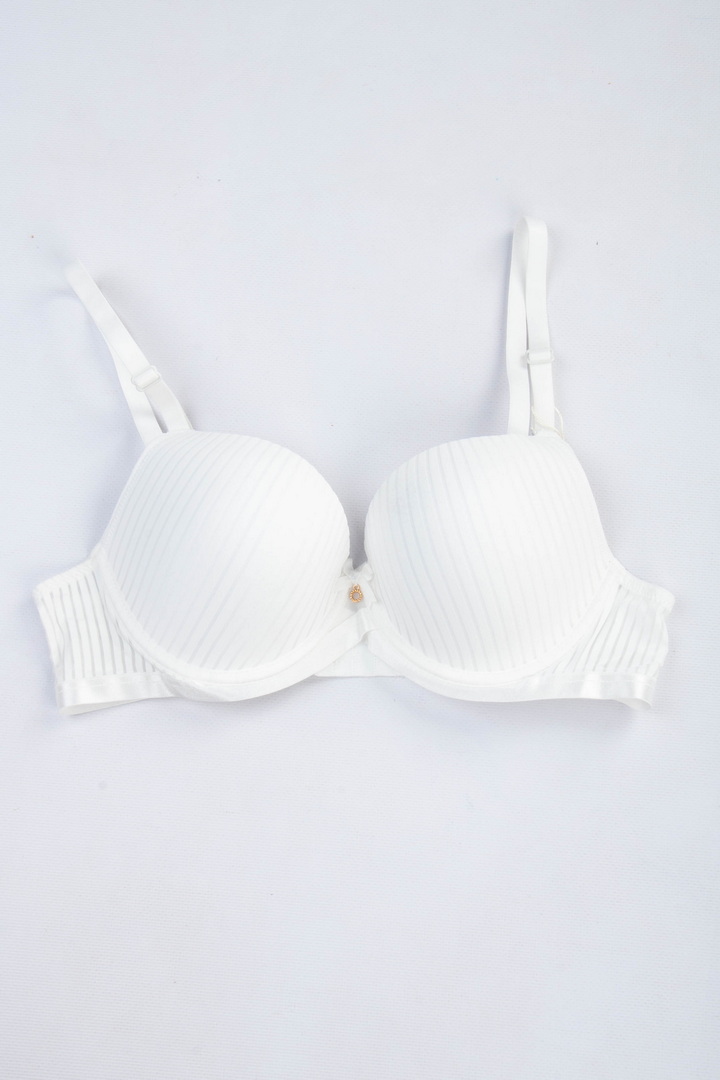 Бюстгальтер у рубчик на товстому поролоні, бретель-знімна, регулюється. На кісточках. Застібка 2 гачки на 4 позиції.