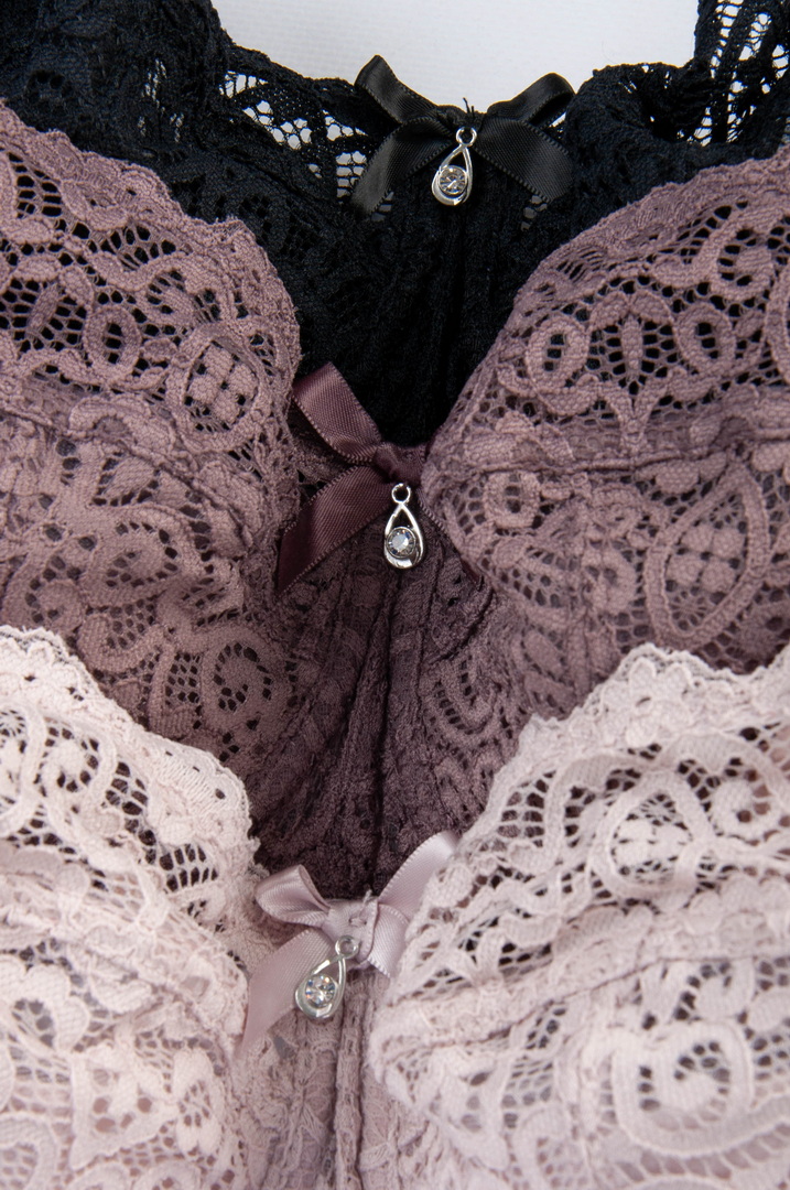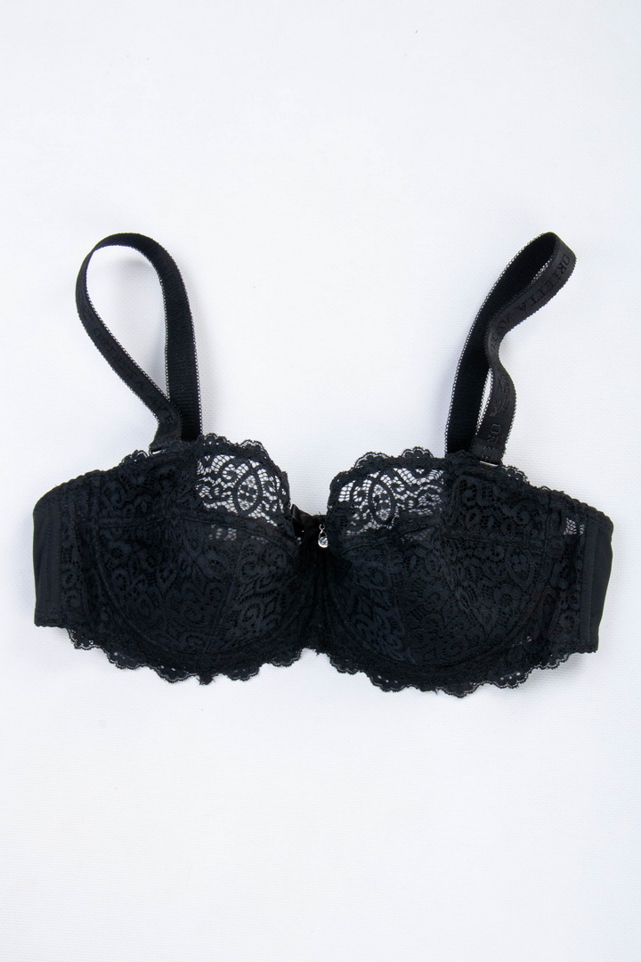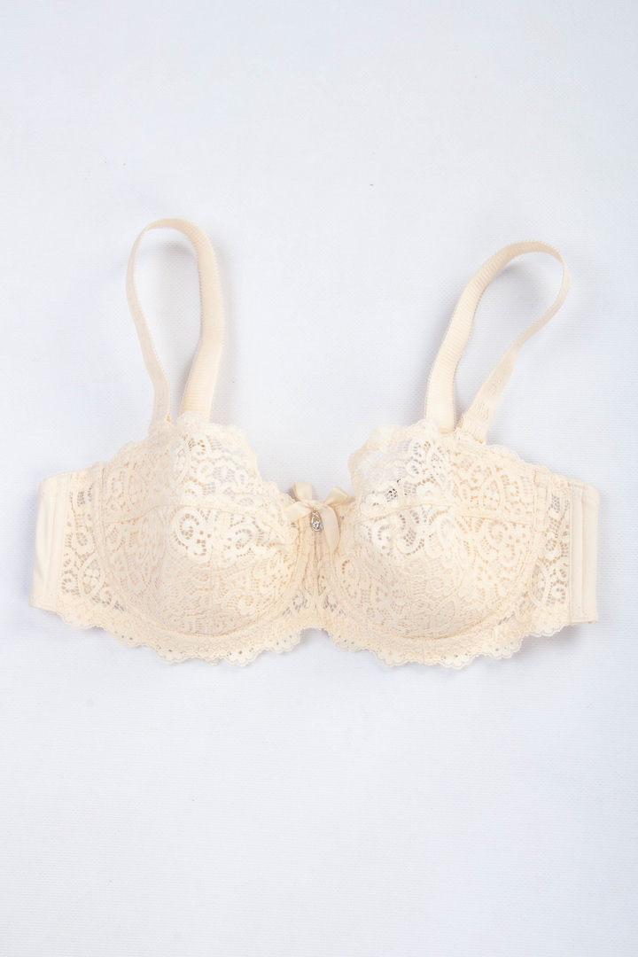 Ажурний бюстгальтер на бавовняній підставці на кісточці, бретель – знімна, регулюється. Застібка 2 гачки на 4 позиції. Зверху мережива силіконова вставка.