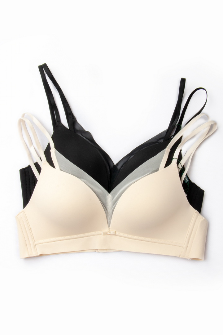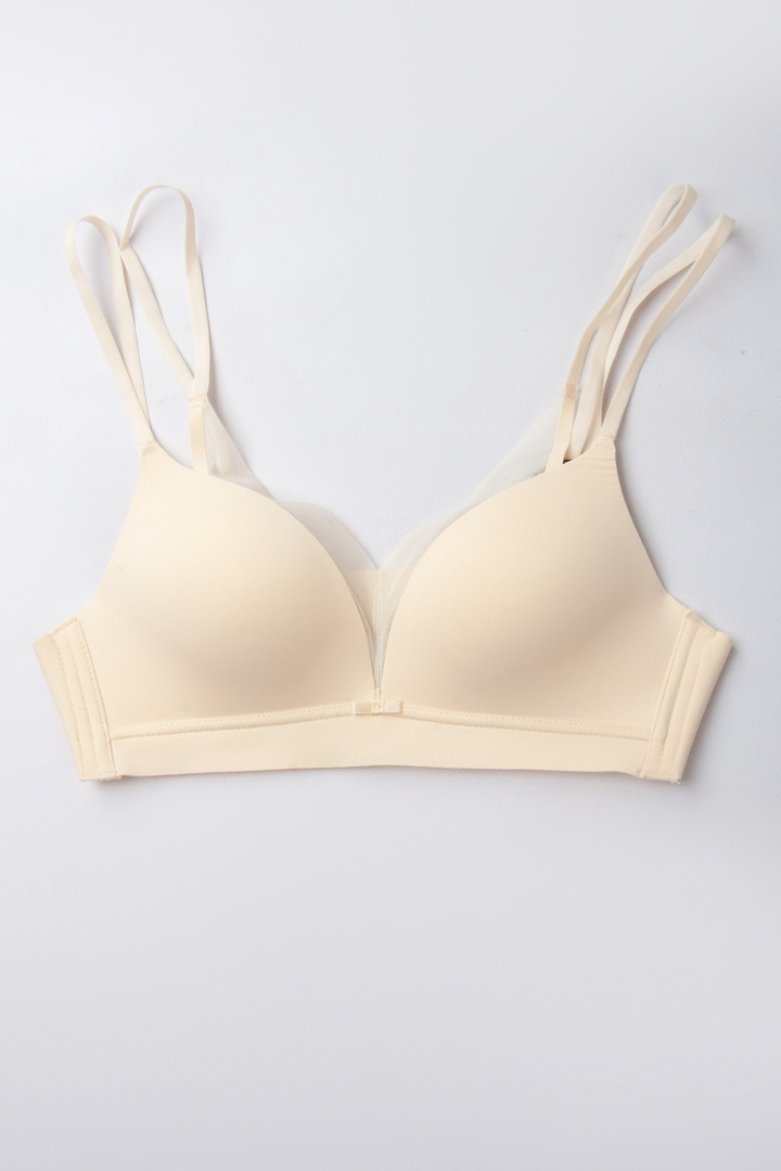 Безшовний бюстгальтер без кісточок, створений для максимального комфорту та природної підтримки. Формовані чашки з тонкого поролону повторює м'яко контури грудей, забезпечуючи акуратну форму без додавання об'єму. Пояс виконаний із гладкої еластичної тканини, яка не залишає слідів на шкірі. Зона декольте прикрашена м'якою мікросіткою.