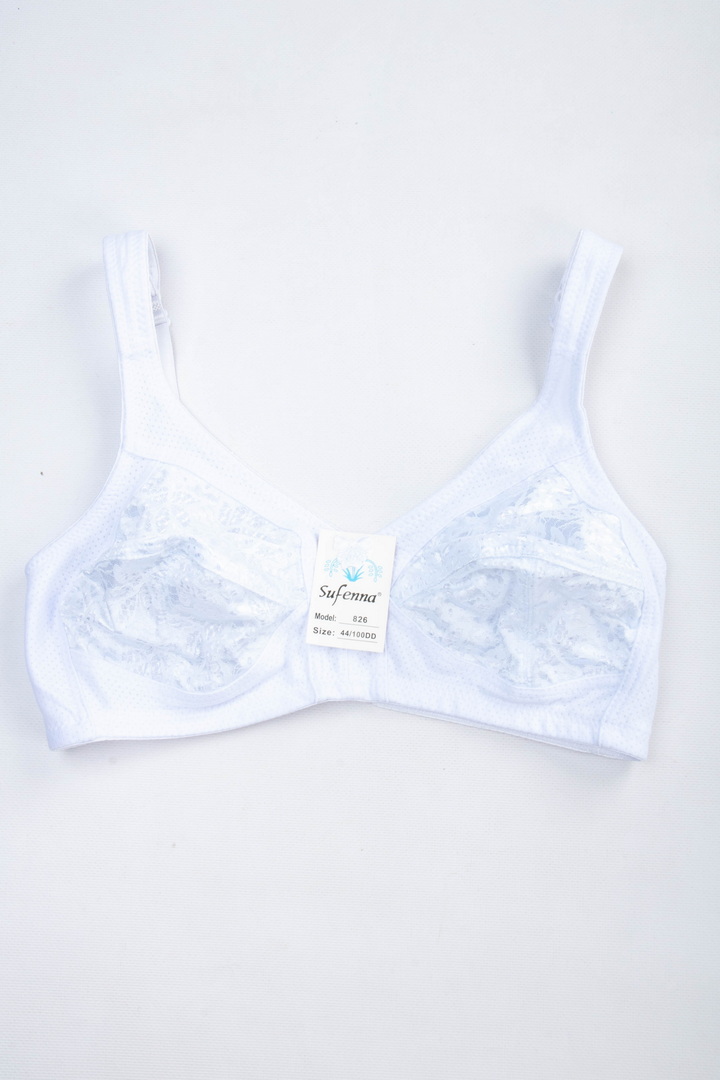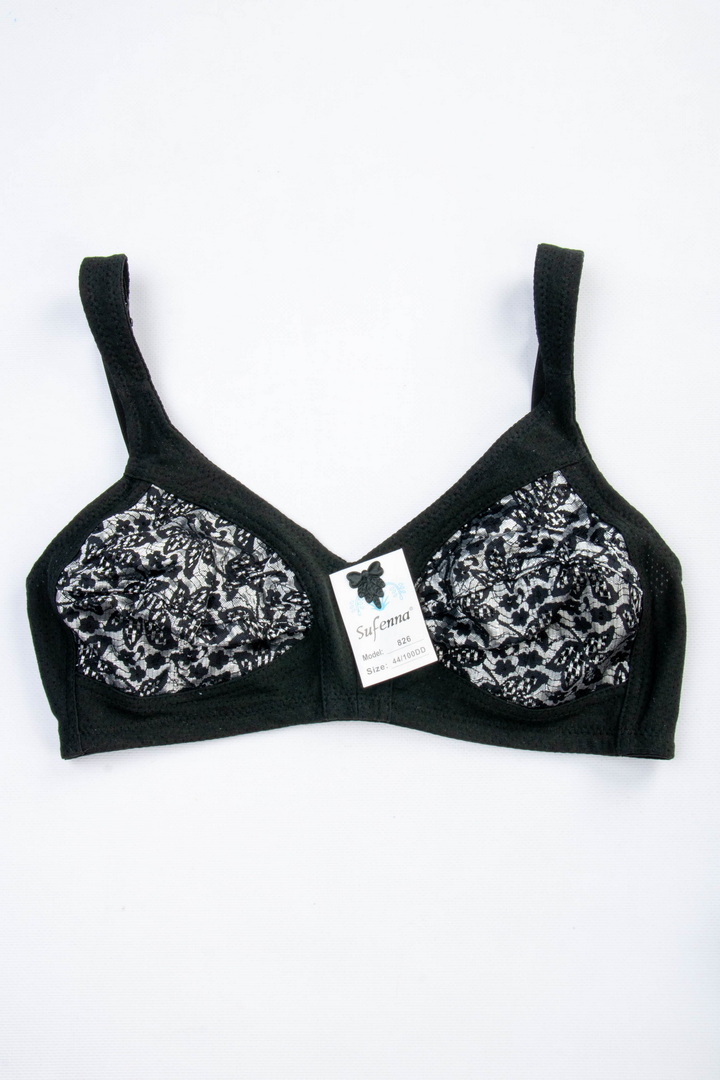Бюстгальтер з м'якими чашками без поролону і кісточок, створений для комфорту і легкості. Широкі незнімні бретелі з регулюванням по довжині, на спинці класична застібка - 3 гачки/3 рівні подовження. Виконаний з натуральної бавовни з перфорацією і прикрашений витонченим квітковим мереживом. Всередині чашок м'яка бавовняна підкладка для максимального комфорту. На поясі вертикальні кісточки.