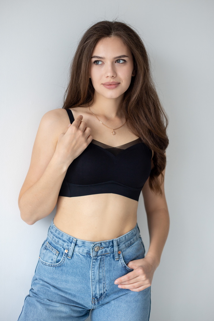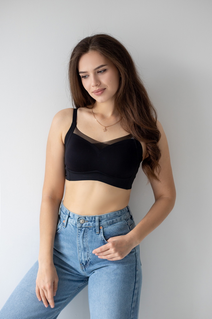 Топ з сіточкою з вшитим поролоном, спина лазер, незнімна бретель, регулюється.
