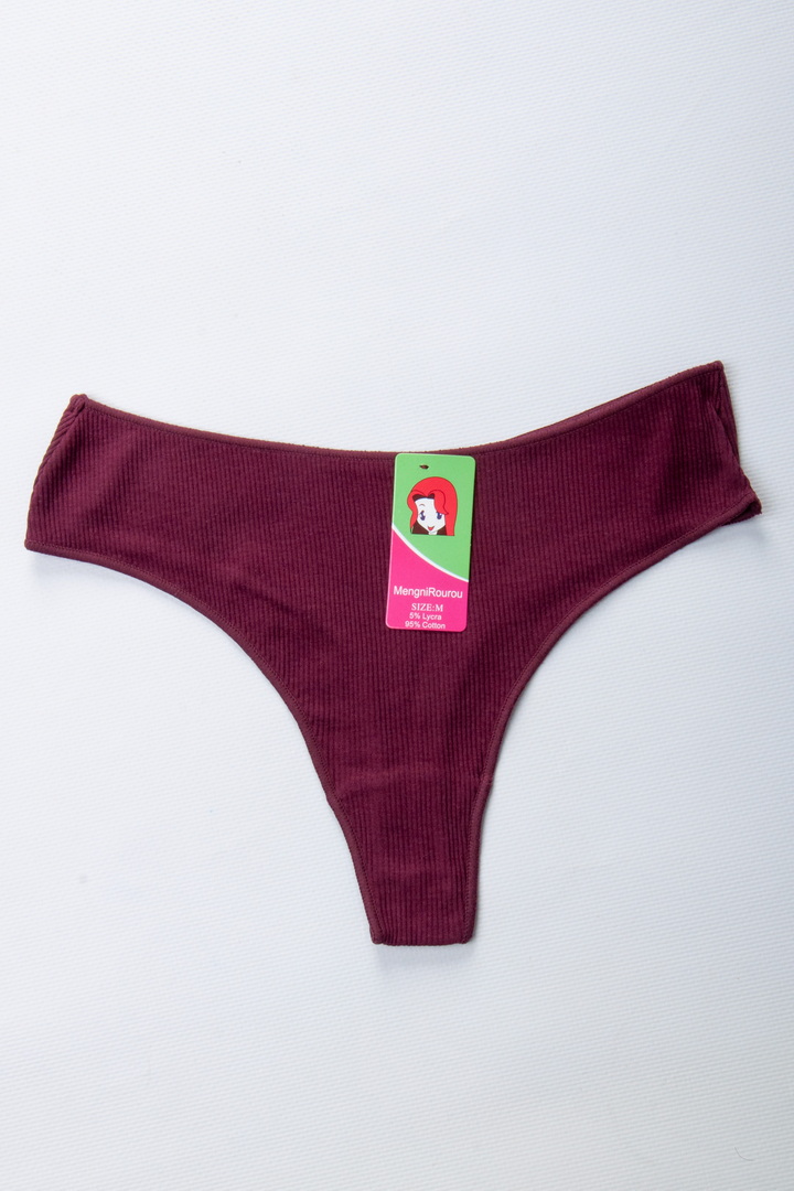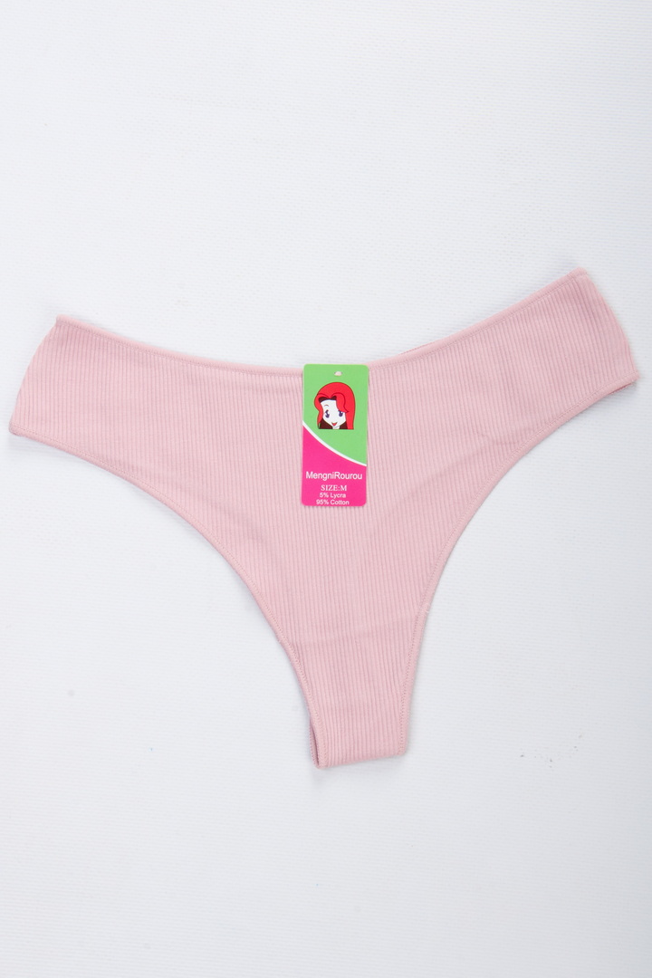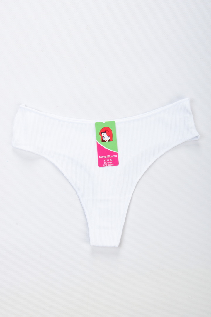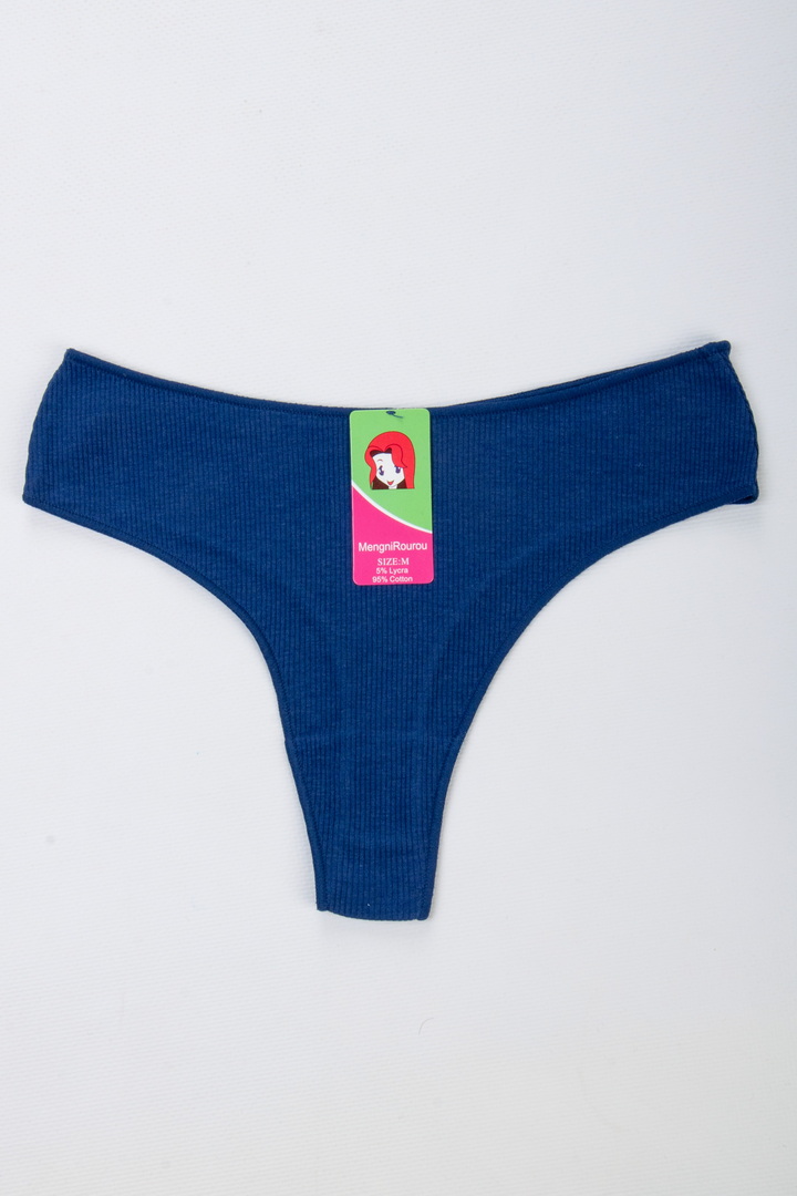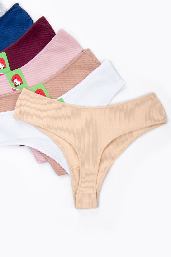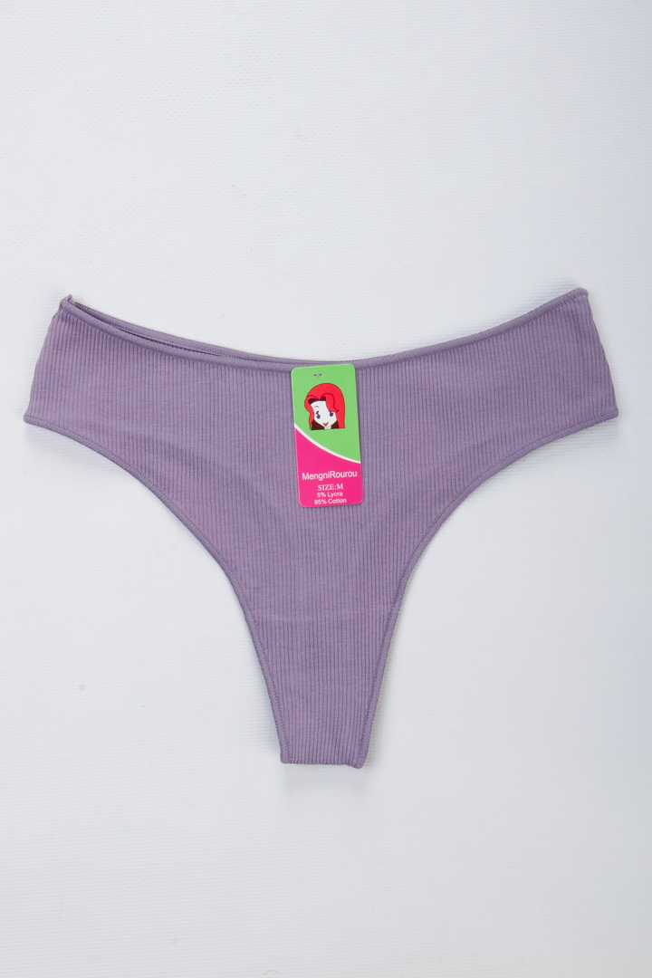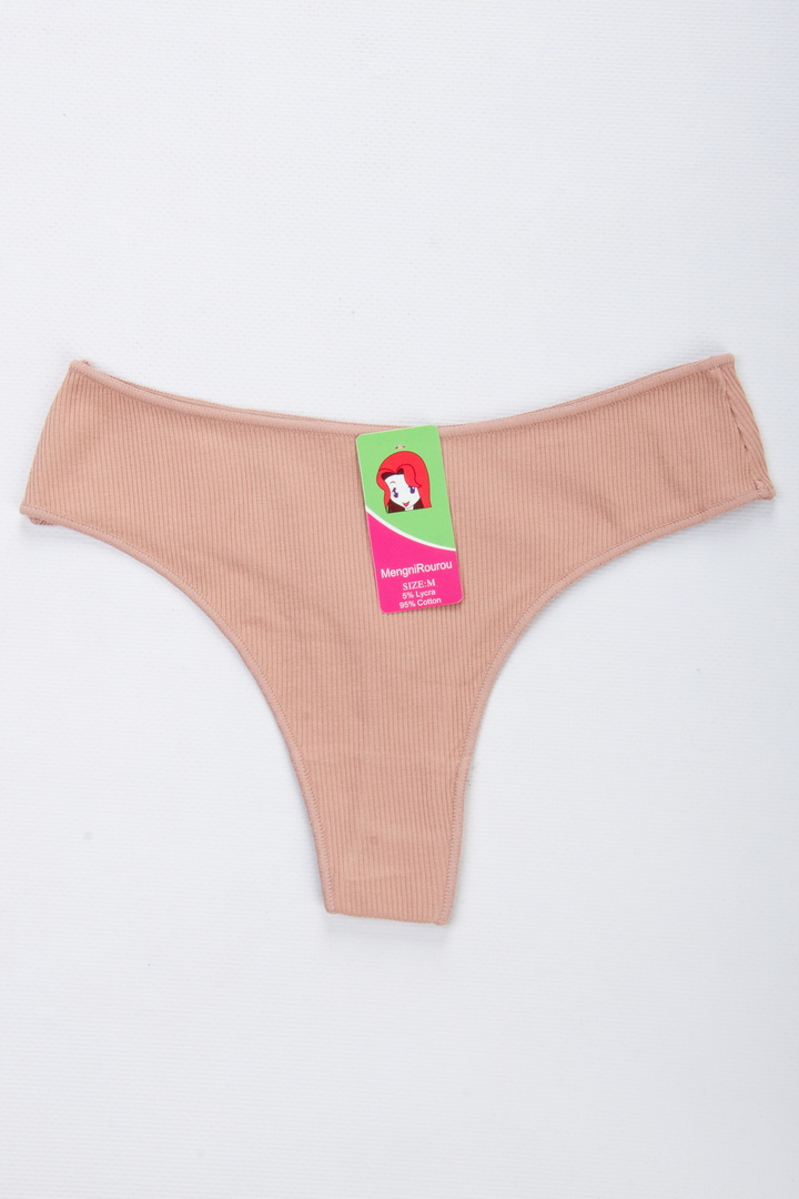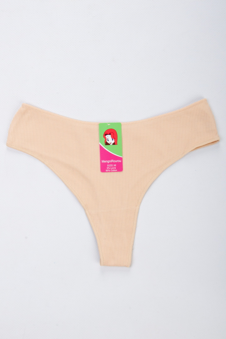 Еластичні рифлені стрінги. Виготовлені з бавовняного матеріалу у рубчик. Мають середню посадку талії з високим вирізом на стегнах. Дана модель еластична та приємна на дотик, яка забезпечує комфорт при носінні.