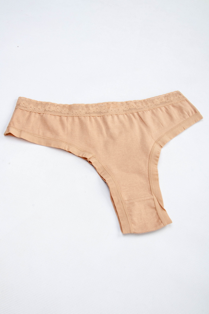 Базові трусики-танга з натуральної бавовни на високій посадці. Мінімалістичний дизайн, спереду та ззаду однаковий крій. На поясі делікатна гумка та ніжна мережива оборка. З ластовицею. Зручна та дихаюча модель для щоденного носіння.