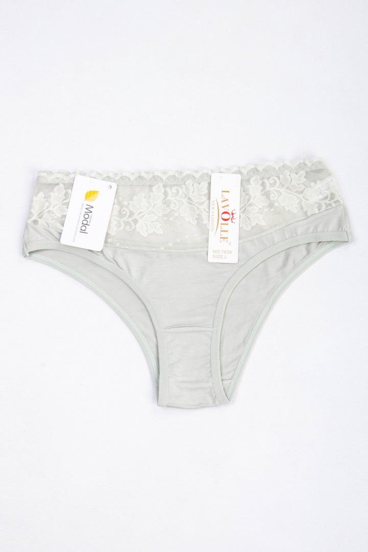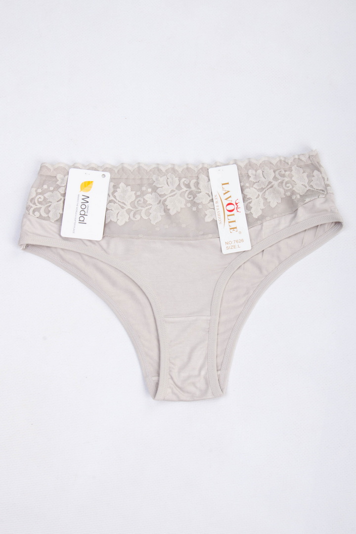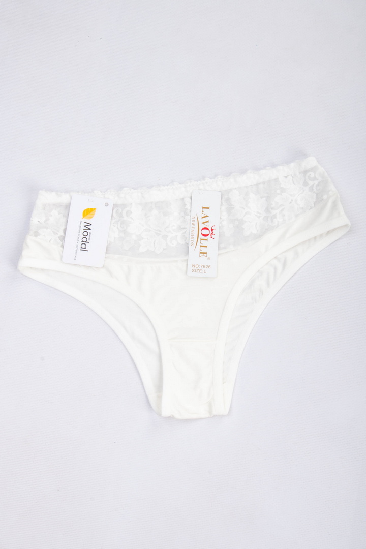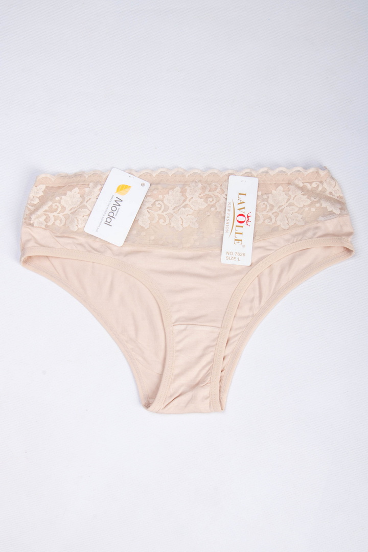 Півкружні труси на підвищеній посадці. Виготовлені із повністю натурального матеріалу у поєднанні з ажуром. Завдяки продуманому крою та поєднанню матеріалів, трусики не тільки виглядають розкішно, але й ідеально сідають по фігурі, підкреслюючи її переваги. Завищена посадка – підкреслює талію, а тонка еластична гумка – забезпечує комфортну посадку без здавлювання. Виконані з комбінації двох матеріалів: зверху квіткове мереживо із мікросітки, що створює легкий ефект прозорості, знизу приємний натуральний матеріал. З ластовицею з натуральної бавовни.