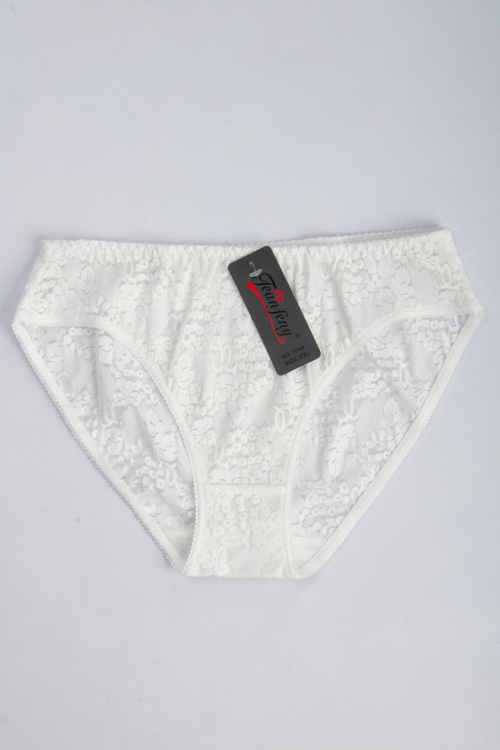 Труси на середній посадці, виконані з мереживного квіткового матеріалу, що надає їм особливого шарму і роблять їх незамінною білизною для повсякденного носіння. Не мають підкладки, матеріал просвічує. Еластичні, злегка з ефектом, що стягує.