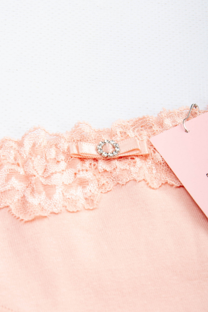 Молодіжні трусики на середній посадці, виготовлені з щільної натуральної бавовни, яка добре тримає форму і приємна до тіла. Плоска делікатна гумка на поясі забезпечує комфортну посадку без здавлювання. Вирізи для ніг оброблені акуратними оверлок-швами, а пояс прикрашений ніжним контурним мереживом, що додає моделі жіночності. Зручний варіант для щоденного носіння. З ластовицею.