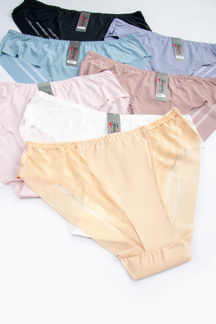 Напівбезшовні трусики-сліпи з мікрофібри та мікросітки. Мають мінімалістичний крій, який не повністю покриває сідниці, створюючи ефектний та жіночний вигляд. Сітка на сідницях додає пікантності та легкості, роблячи модель привабливішою. Комбінація матеріалів та дизайну підкреслює форми, залишаючись при цьому комфортною в носінні. Дуже добре тягнуться.