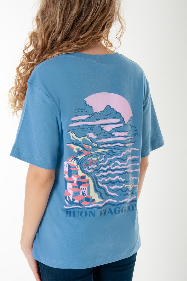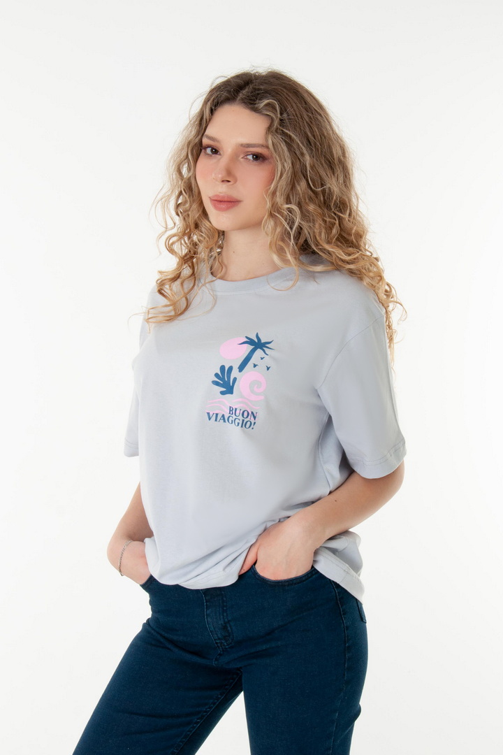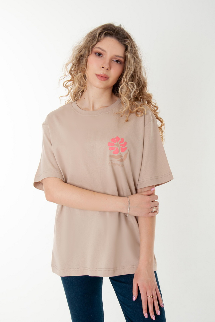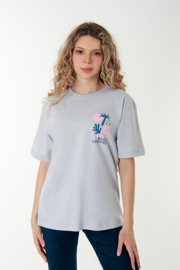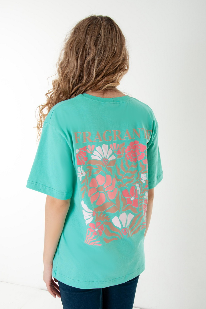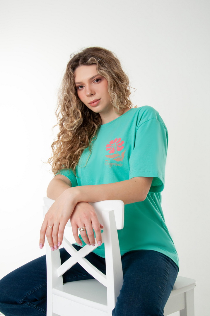 Ця футболка — про настрій. Про легкість ранку, теплий вітер і впевненість у кожному кроці. Свіжий, освіжаючий образ, який підкреслює природну красу, а виразні принти на спинці додають характеру та модного звучання. Невеликий акцент спереду гармонійно балансує дизайн, створюючи цілісну стильну історію. Вільний силует зі спущеним плечем виглядає актуально та невимушено. Футболка красиво лягає по фігурі та дарує відчуття повної свободи. Це той формат oversize, який виглядає сучасно — без зайвого об’єму, лише правильна форма та посадка. Кулір — легкий, м’який і приємний до тіла. Тканина дихає, не створює парникового ефекту та зберігає акуратний вигляд. Поєднуй із джинсами-кльош, шортами, лосинами чи спідницею — вона легко адаптується під твій настрій. Це не просто річ, а виразний елемент гардероба, який робить образ завершеним. Обирай комфорт. Обирай характер. Обирай себе.