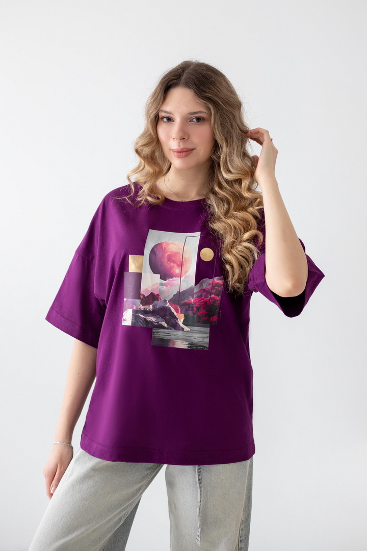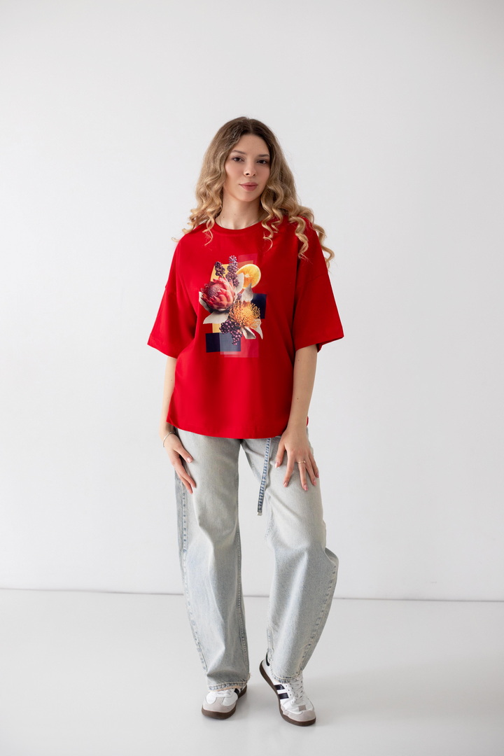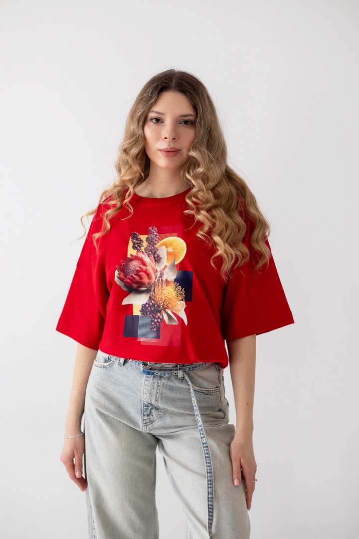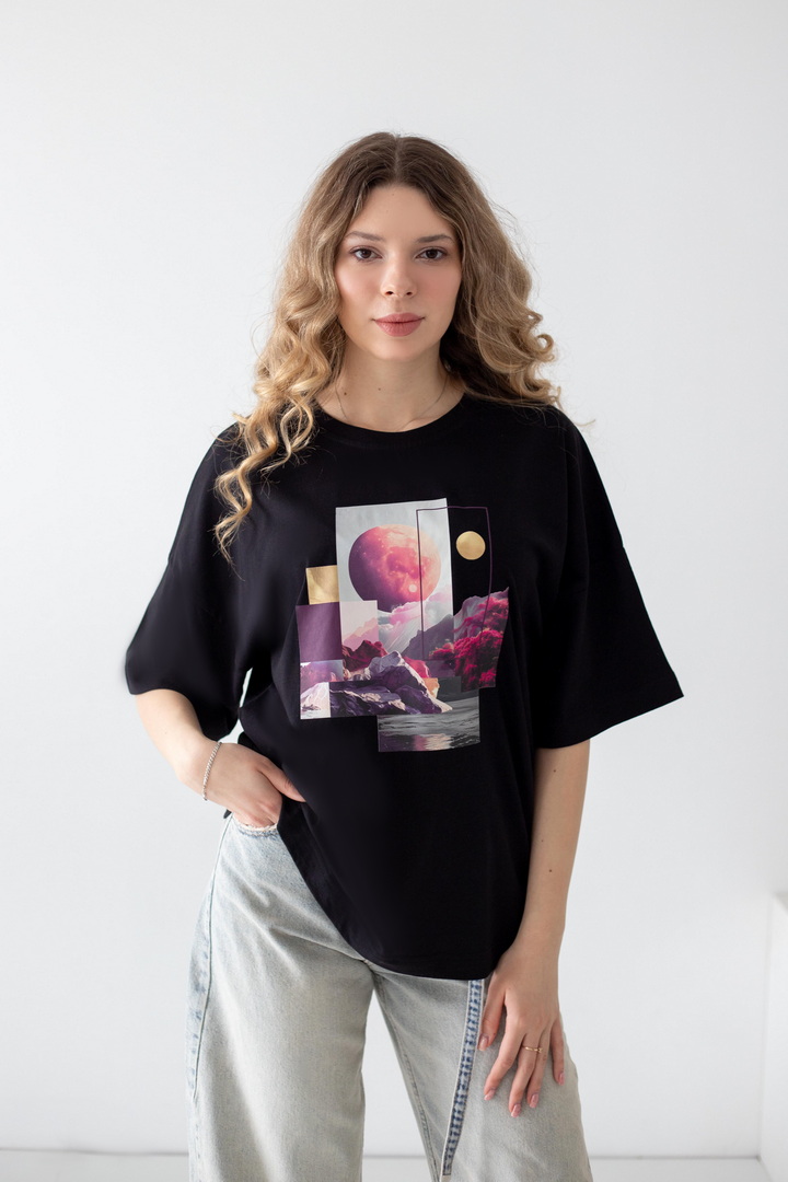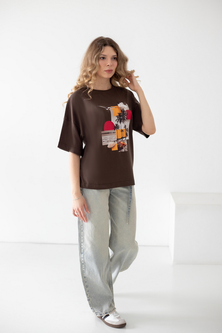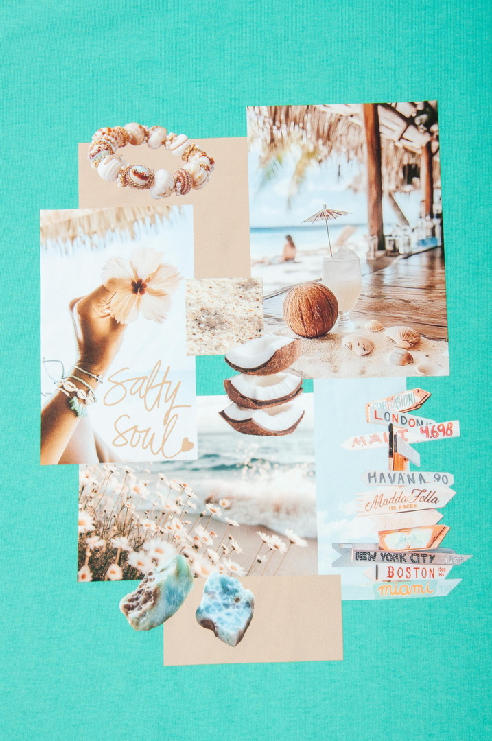 Ця жіноча футболка — справжній вайб свободи, літа та натхнення. Дизайн із стильним колажним принтом — створює гармонійний, трендовий образ із нотками естетики lifestyle. Модель виконана з полотна кулір, яке відзначається м’якістю, легкістю та чудовою повітропроникністю. Тканина приємна до тіла, ідеально підходить для щоденного носіння в теплу пору року, не втрачає форму та колір. Футболка має універсальний крій, який красиво сідає по фігурі та забезпечує комфорт. Вона легко комбінується з джинсами, шортами чи спідницями, додаючи образу сучасності та легкого настрою відпустки. Це ідеальний вибір для тих, хто хоче виглядати стильно і нести із собою частинку літа кожного дня.