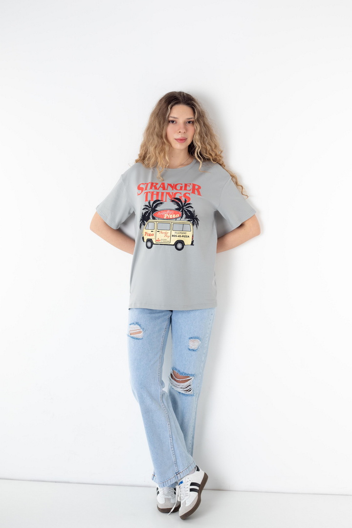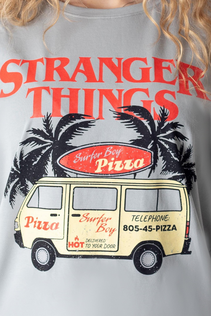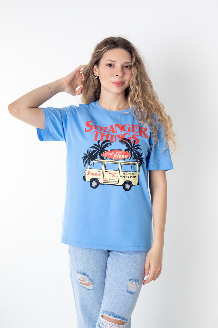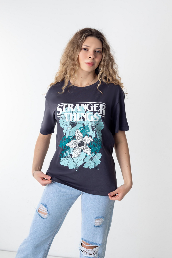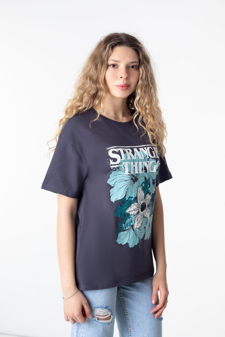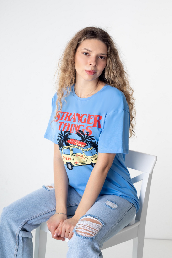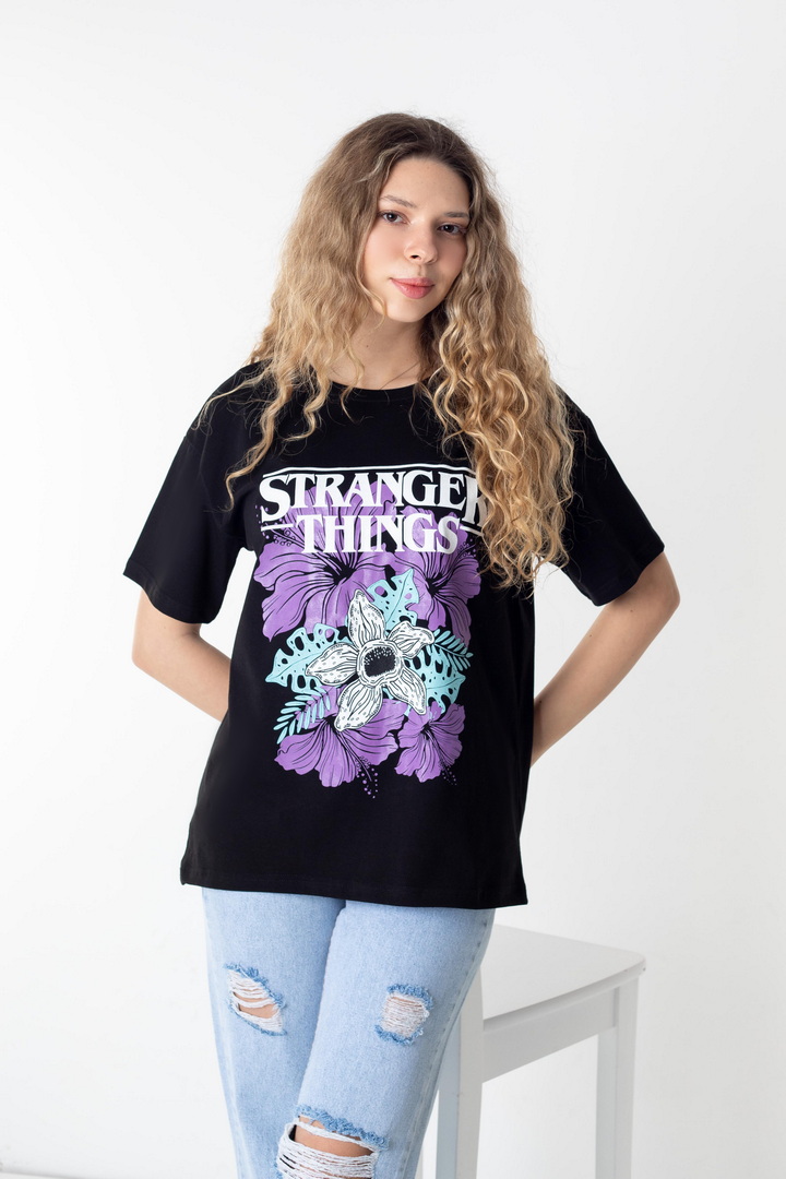 Стильна жіноча футболка зі стрейч-куліру пеньє — це поєднання трендової естетики, комфорту та характеру. Футболка створює ефектний контраст із яскравим, стильним принтом у стилі Stranger Things. Виразний дизайн та графіка додає образу загадковості та індивідуальності. М’яка, еластична тканина, приємно прилягаєдо тіла, дозволяє шкірі дихати та забезпечує максимальний комфорт. Вільний крій створює сучасний силует, який легко адаптується під будь-який стиль — від розслабленого casual до сміливих street-style образів. Це та сама річ, яку хочеться носити знову і знову: на прогулянку, у подорож, на зустріч із друзями чи навіть як стильний акцент у щоденному луці. Просто одягни — і виглядай впевнено, стильно, по-своєму.