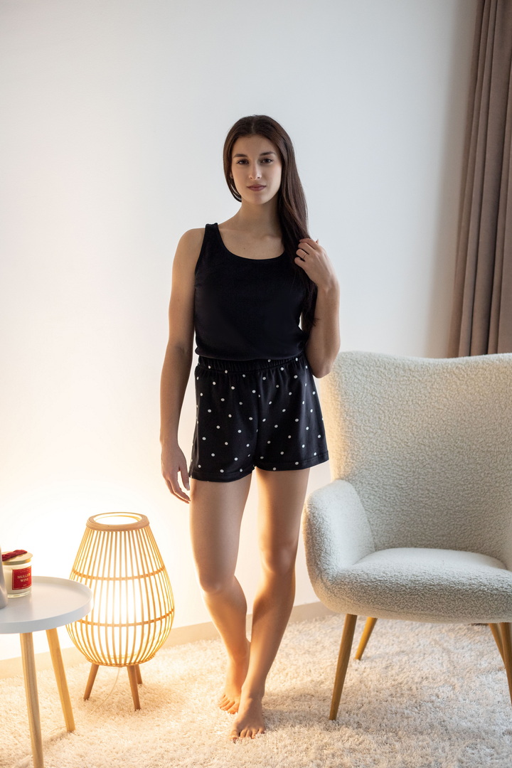 Жіночий велюровий комплект ― стильний і комфортний вибір для дому та відпочинку. М’який велюр приємно прилягає до тіла, даруючи відчуття затишку та легкості. Майка має зручний фасон, а шорти доповнені еластичним поясом для комфортної посадки. Комплект виглядає елегантно та акуратно, підкреслюючи жіночність і створюючи максимальний комфорт. Ідеально підходить для сну, релаксу та домашніх справ.