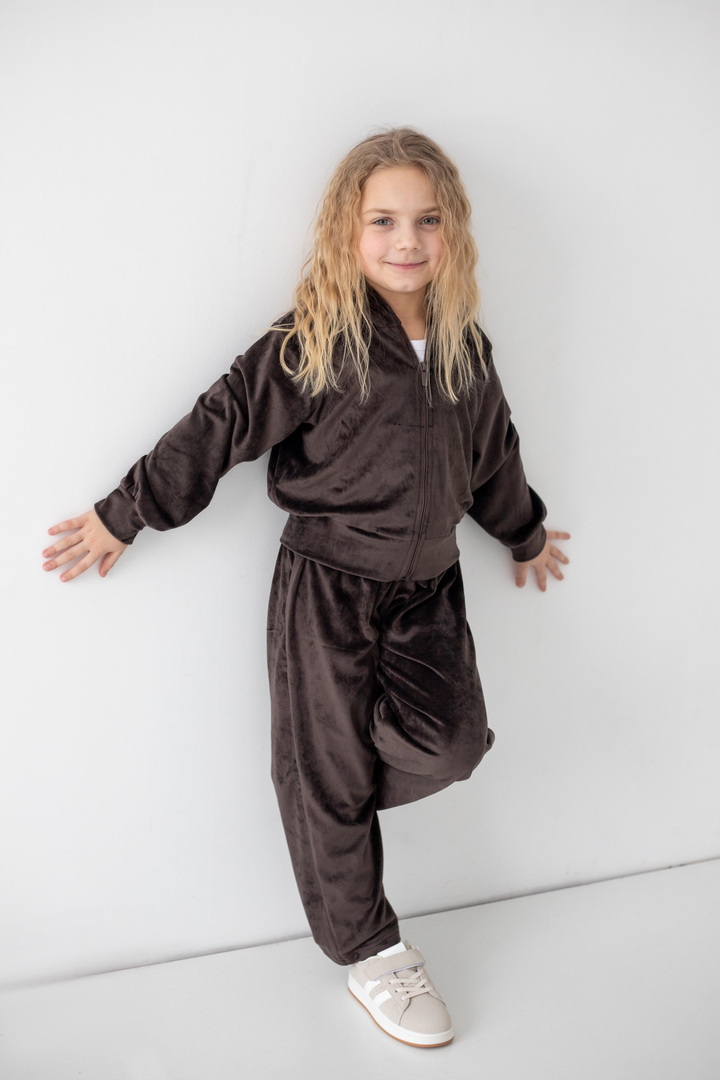 М’який велюр приємний до тіла, забезпечує комфорт протягом усього дня та дарує відчуття затишку. Костюм практичний у носінні, не сковує рухів і чудово підходить як для прогулянок, так і для активного відпочинку.